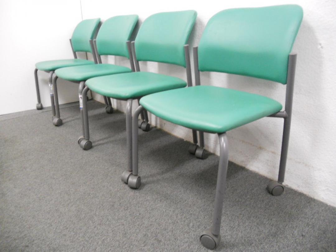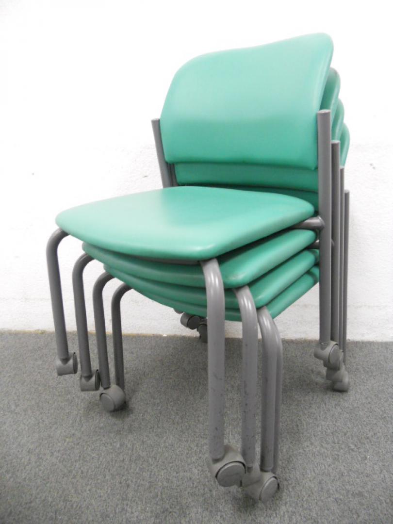 ■スタッキングチェア ■キャスター付 ■グリーン(ビニールレザー) ■コクヨ(KOKUYO)- 在庫数