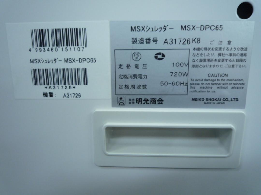 【中古】 MSX-DPC65 明光商会 シュレッダー 114067