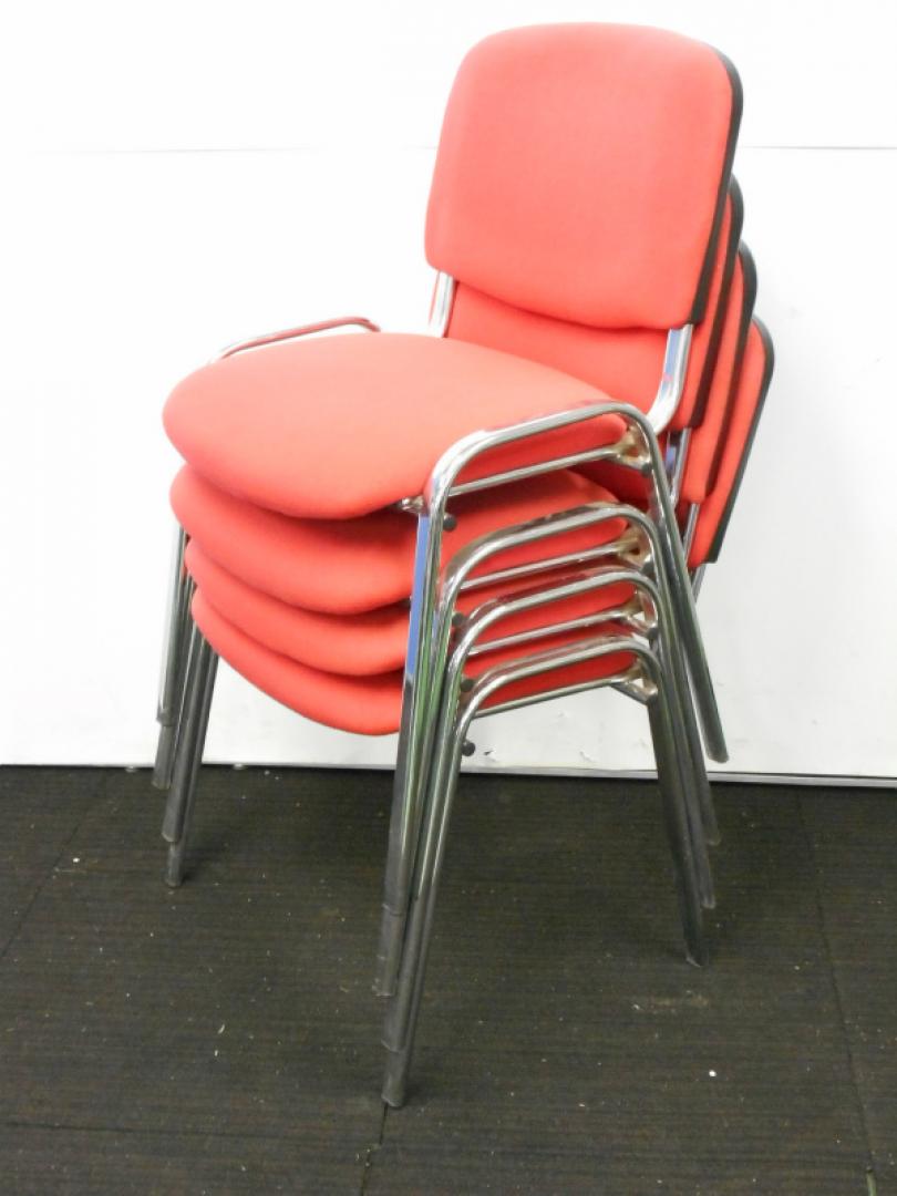 【セット商品】スタッキングチェア4脚セット レッド 会議用チェア ミーティングチェア 【中古オフィス家具 事務椅子】- 川崎店