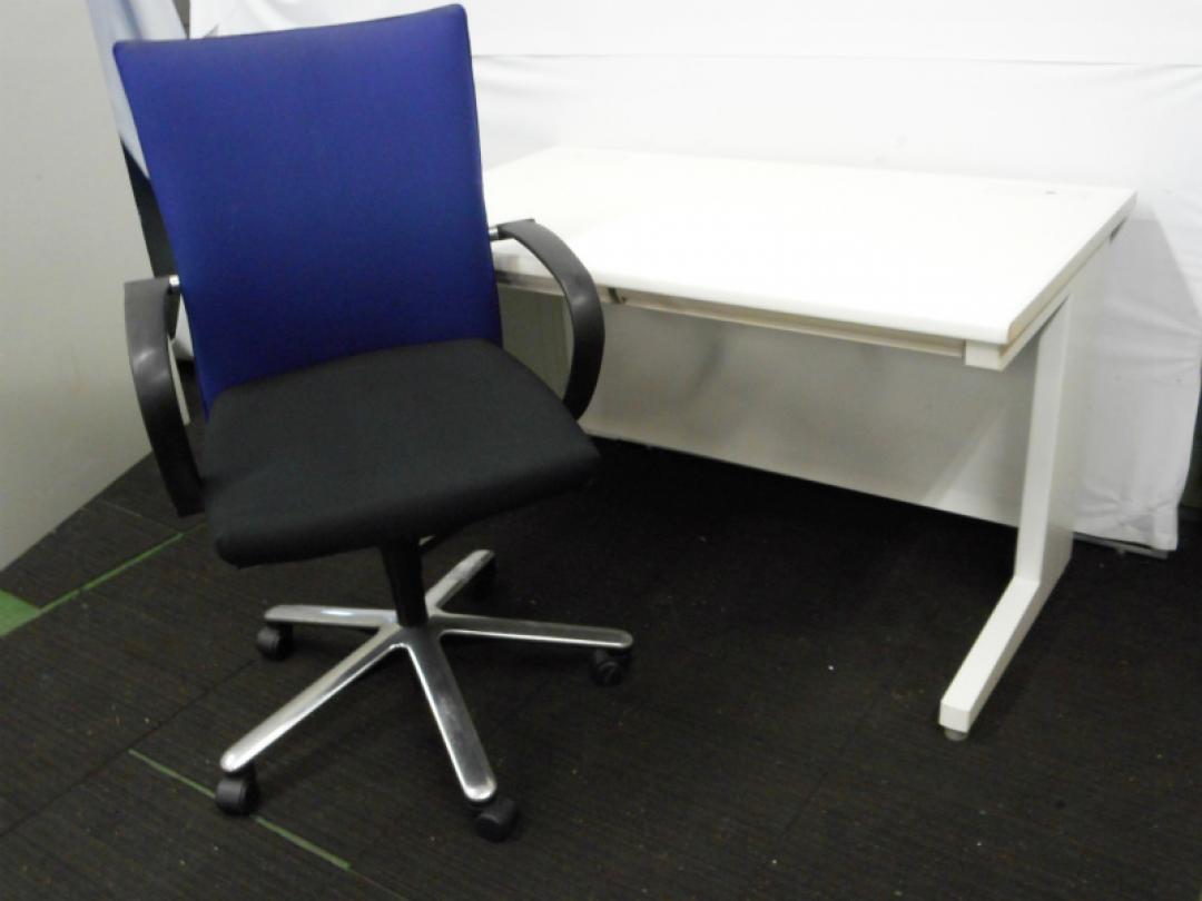 【セット商品】ホワイト 幅1200 平デスク + コクヨ製 カノスチェア 肘付きチェア のセット【中古オフィス家具 事務机】- 川崎店
