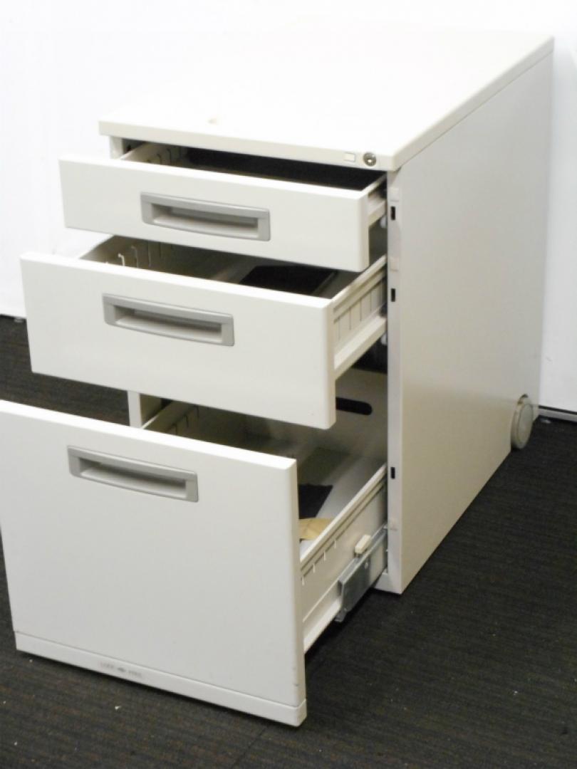 【おつとめ品 ラスト1台のため特価処分】稲葉製作所 3段ワゴン 平デスクの下に配置可能な3段引出しキャビネット【中古オフィス家具 事務机】- 川崎店