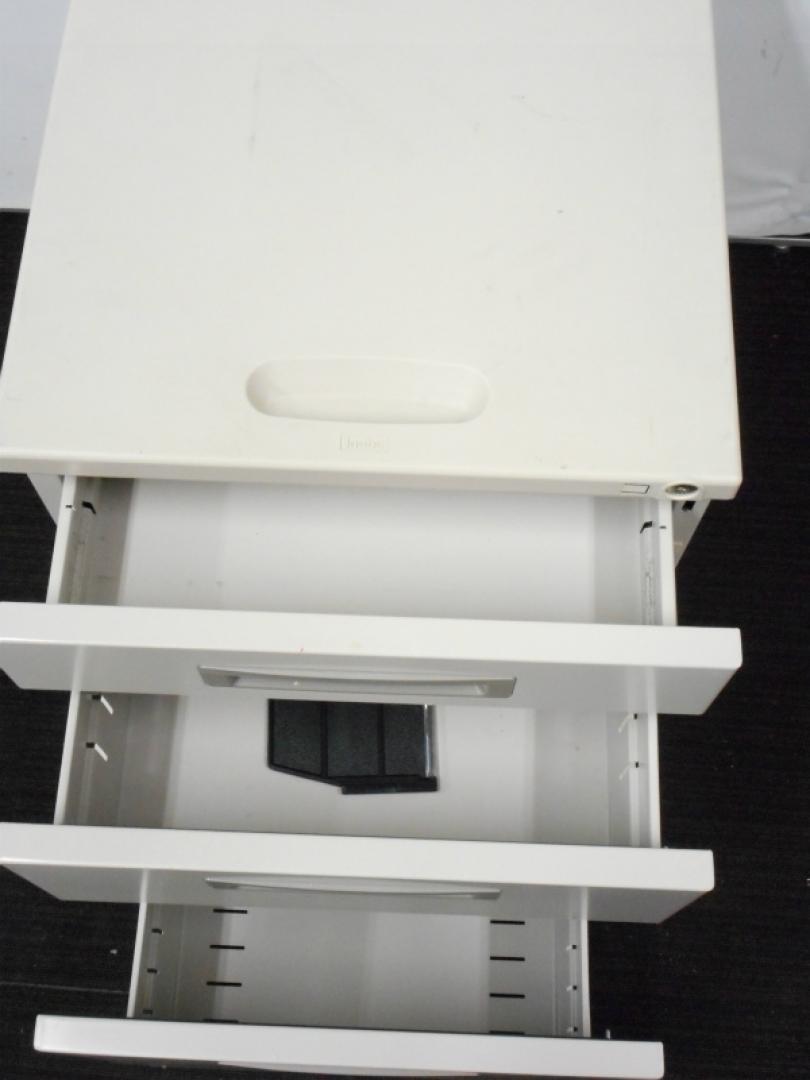- 一部不具合ありその脇机・ワゴンの本来の効用を果たすための機能以外の一部が使用不可な状態。(例、引出が開閉しづらい、 キャスターロック機能使用不可、ラッチ不良 等がある。)
