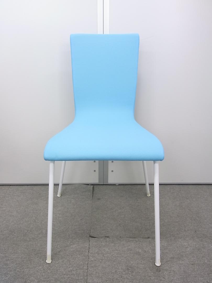 【新古品】スタッキングチェア 4脚セット ターコイズブルー【会議チェア】※4脚セット商品新古