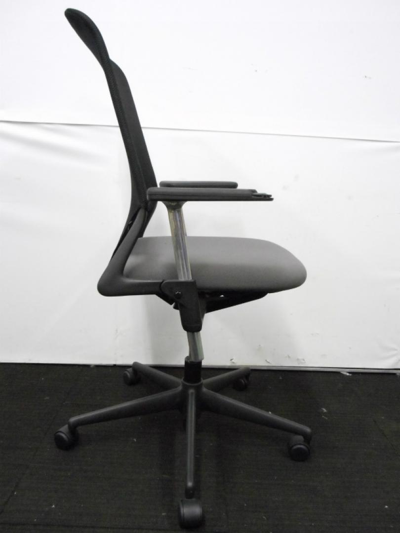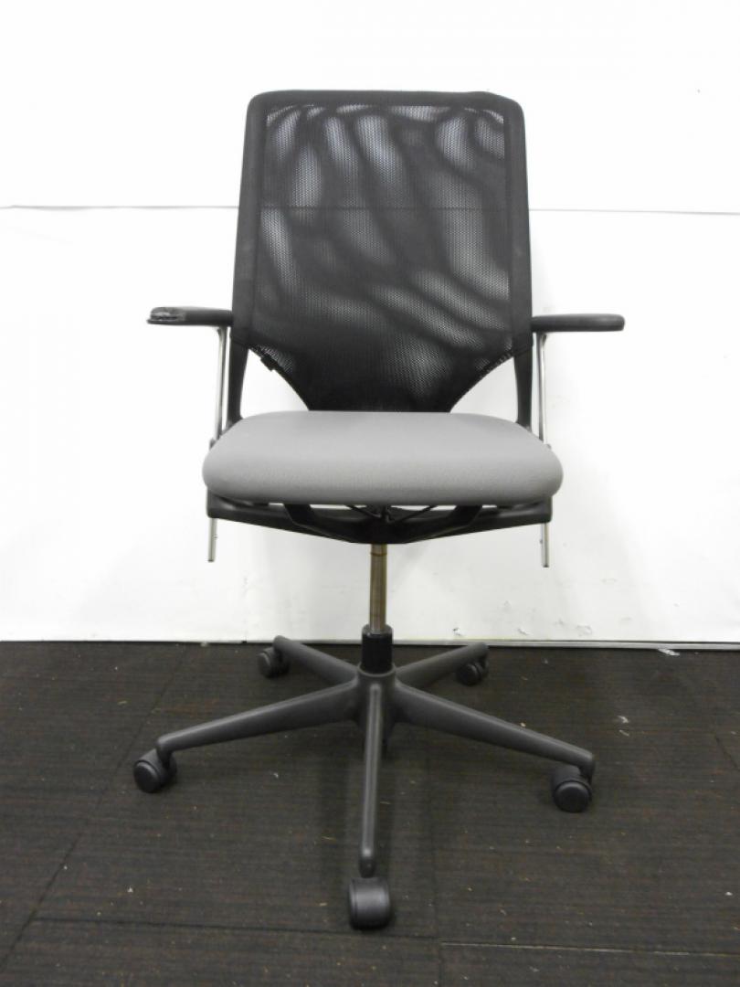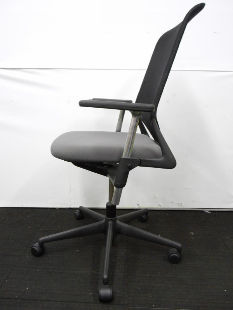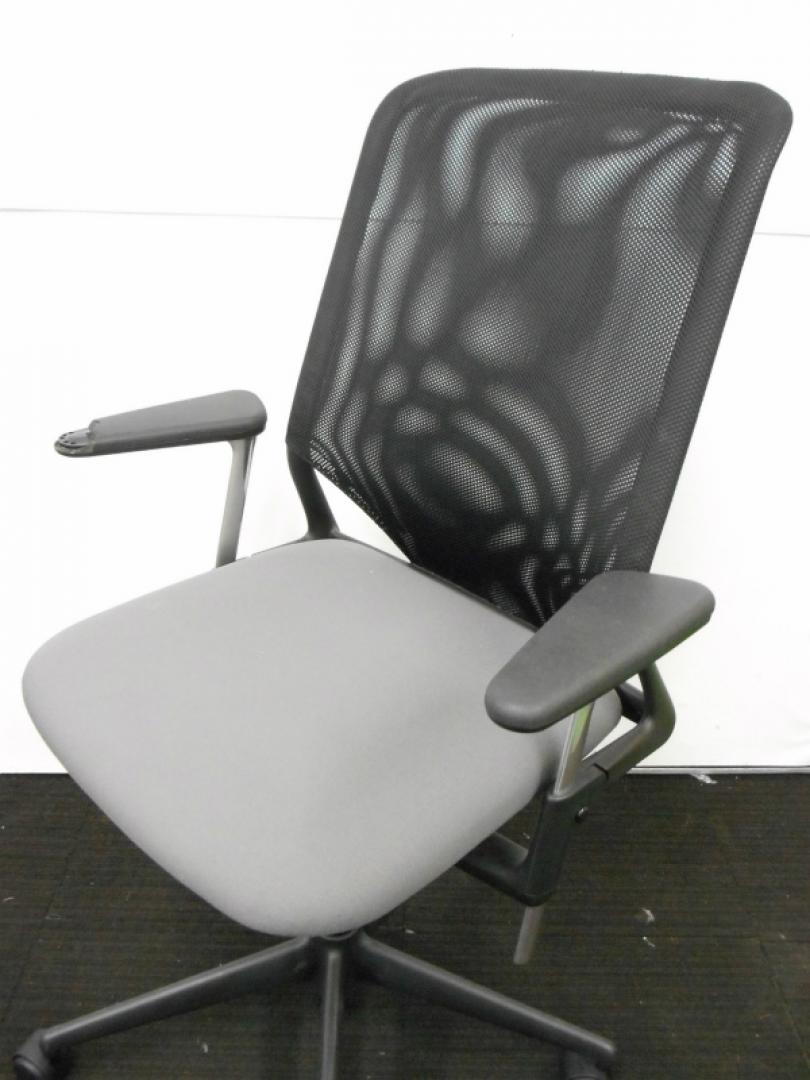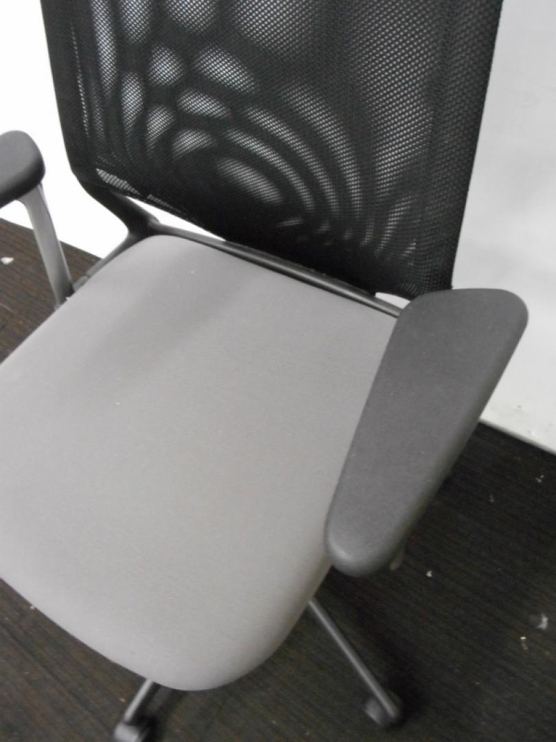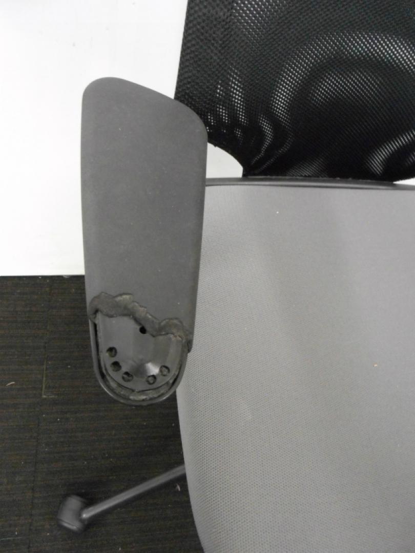 【おつとめ品】肘かけに傷あり 肘付きメッシュオフィスチェア ブラック×グレー 【中古オフィス家具 事務用回転イス】【高級チェア】- 川崎店