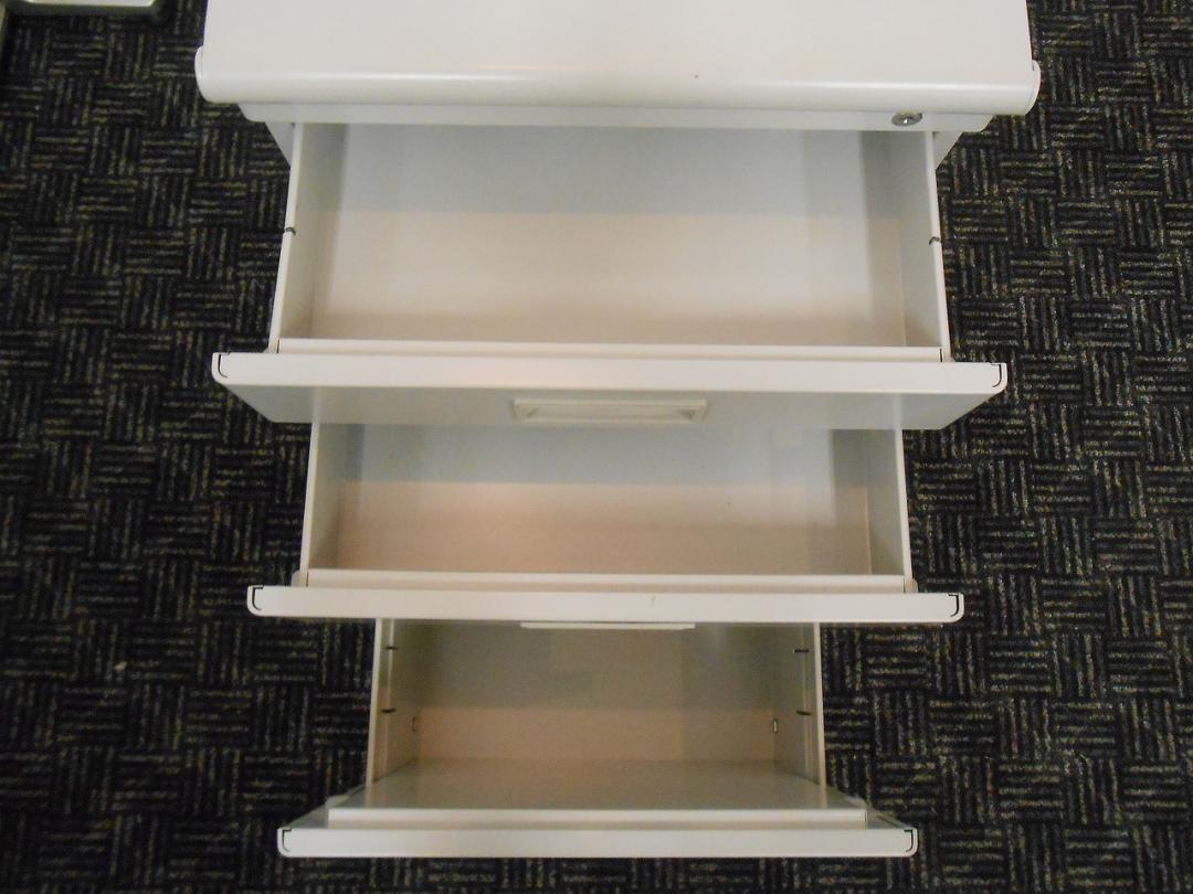 ■事務キャビネット■3段ワゴン■ラッチ機能なし■収納を増やしたい方へ!!!■ラッチ機能無い為、おつとめ品■色:ニューグレー■その他メーカー製■鍵作成の際は要確認です!※まれに作れない場合がございます■- 在庫数