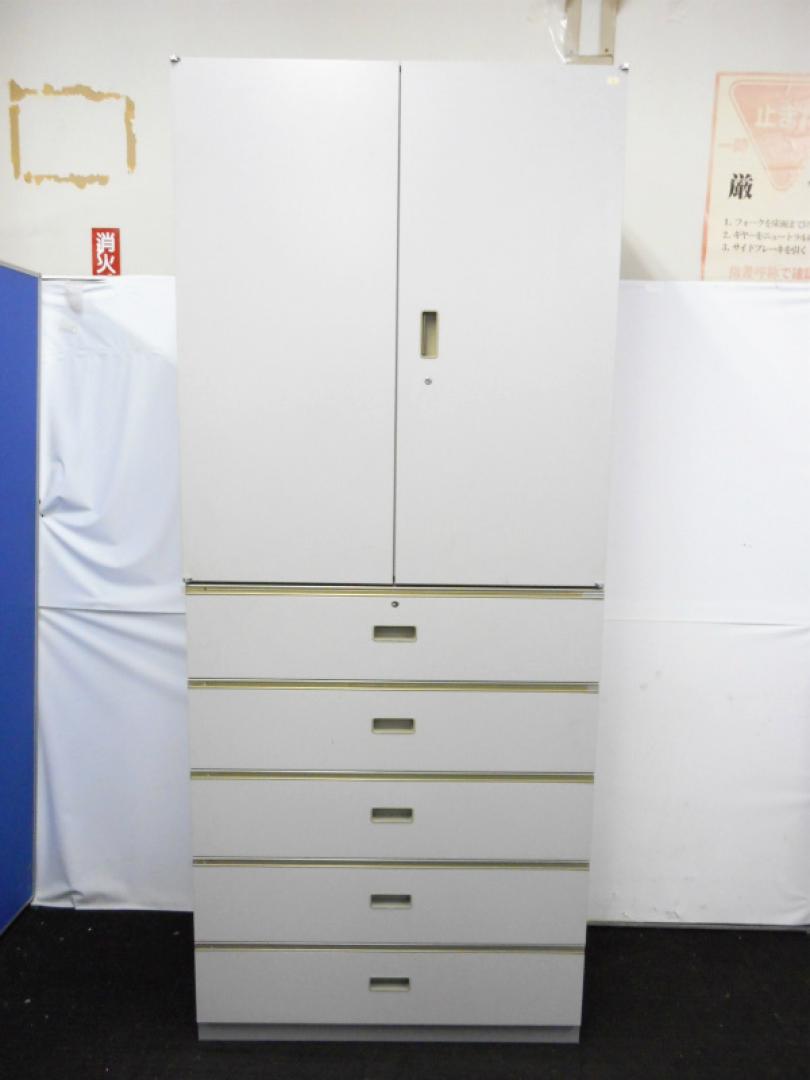 上段両開き(棚板1枚)+下段5段引出し(B6型)の書庫セット