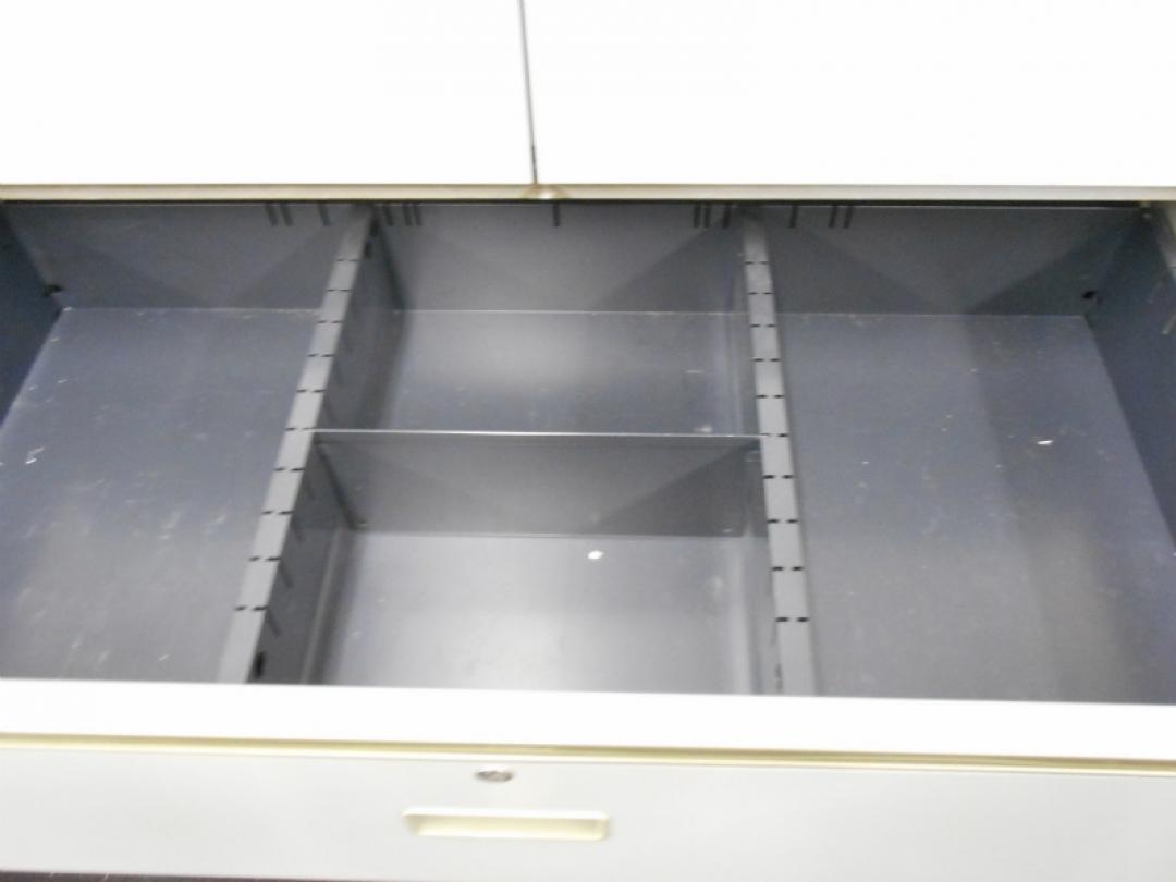 - 一部不具合ありそ引出の開閉不可、施錠不可、棚板無しといったの書庫の本来の効用を果たすための機能以外の一部が使用不可(例、扉、引出の開閉がしづらいなどがある。 )