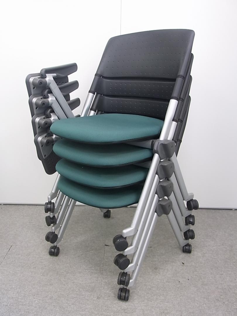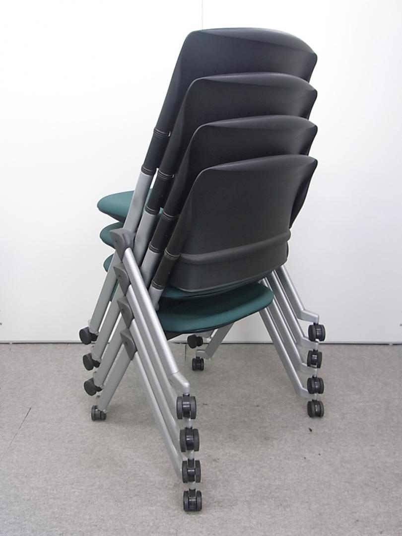 【大量入荷】オカムラ製 LITA■重ねて並べられる上になんとメモ台付き■もちろんキャスター付き!省スペースでセミナールームなどに最適です!中古稀少品!【会議チェア】- 在庫数