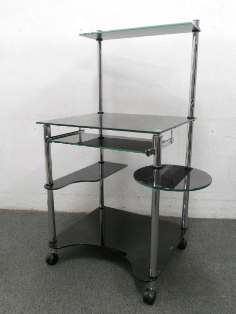 【ガラス】PCラック ■キャスター付 ■パソコンデスク- 在庫数