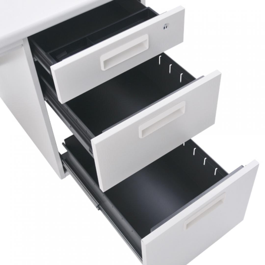 空間を明るく演出する、横幅1200mmタイプの片袖机です。