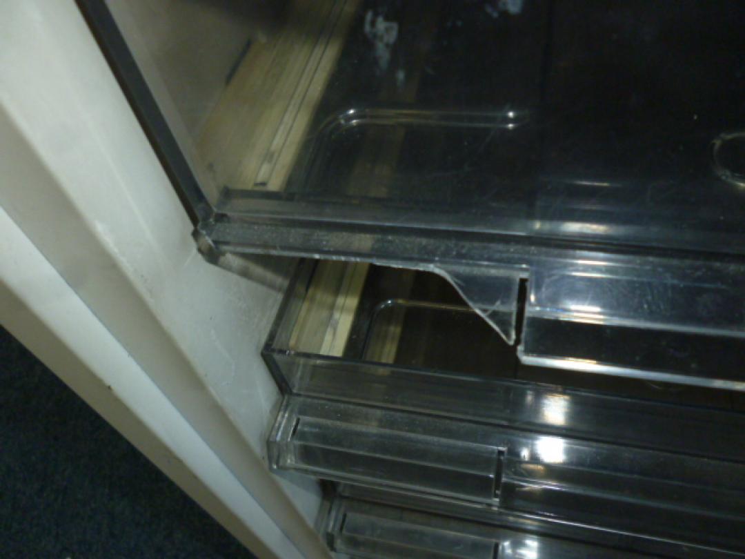 - 壊れている引出の開閉不可、施錠不可、棚板無しといったその書庫の本来の効用を果たすための機能に不具合がある(例、扉、引出の開閉が行えない。)