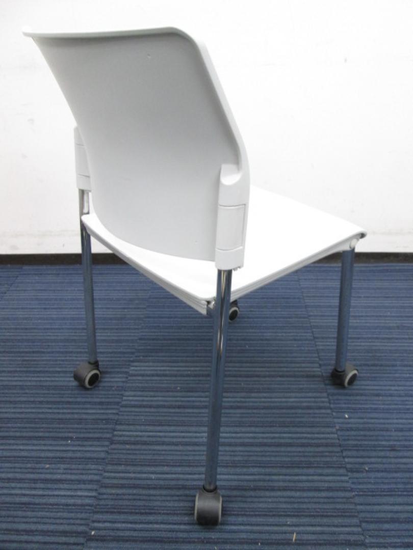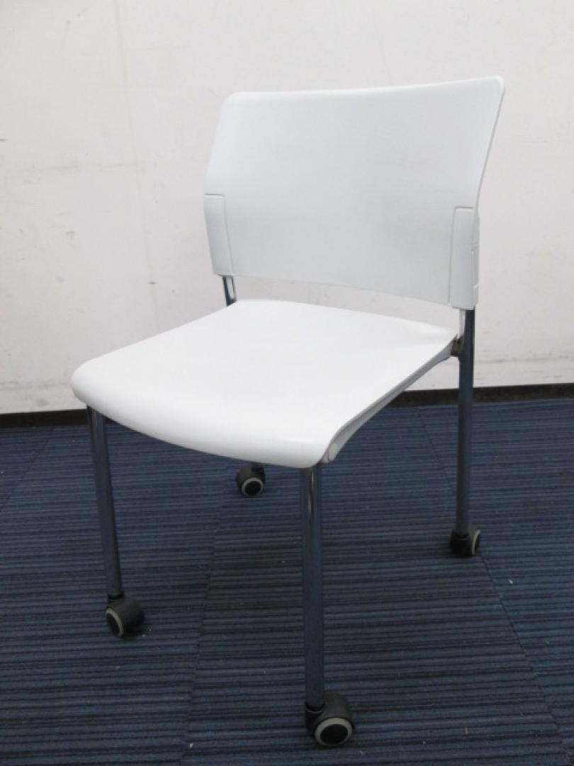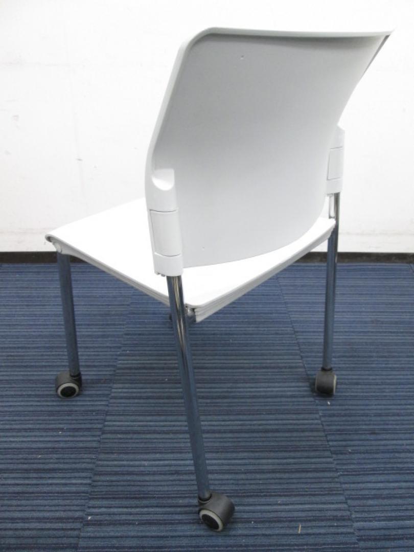 11,000円⇒10,000円!!!【綺麗なホワイト】スタックチェア4脚セット キャスター付き 【会議椅子】- 日本橋店
