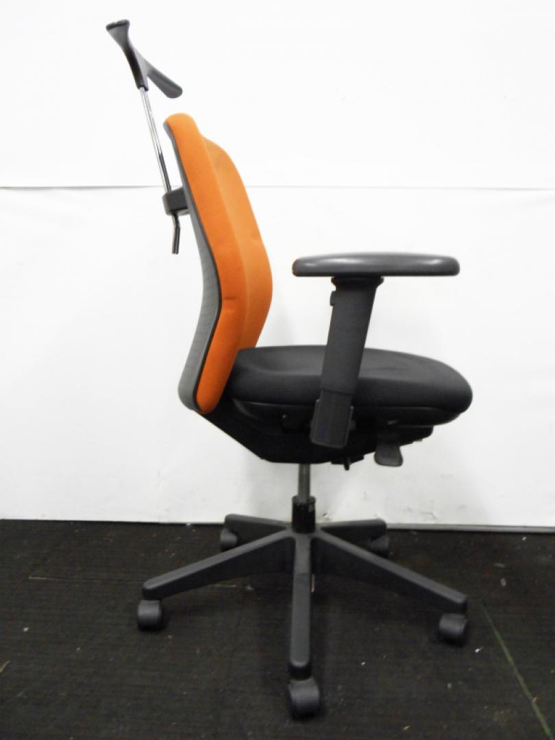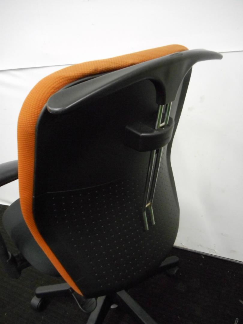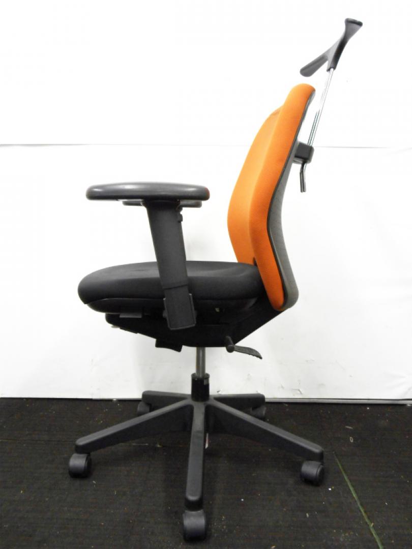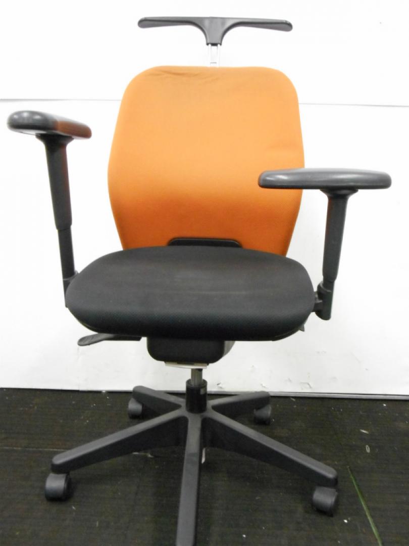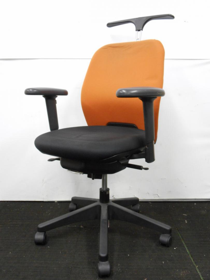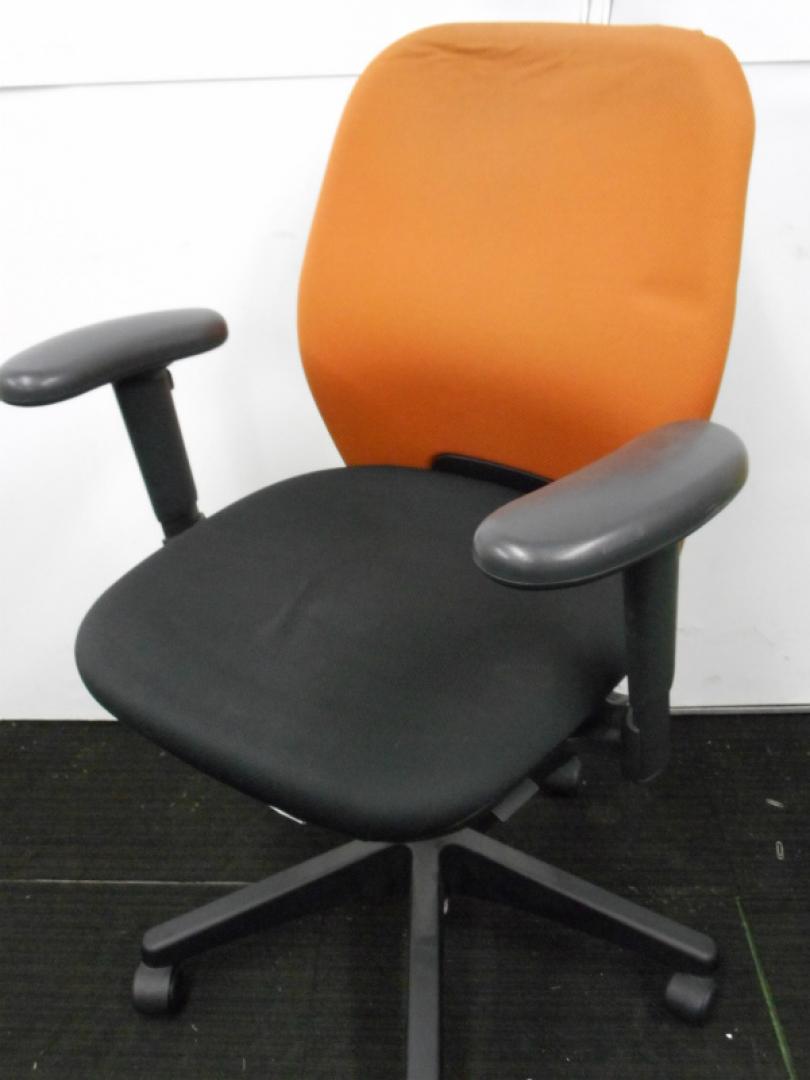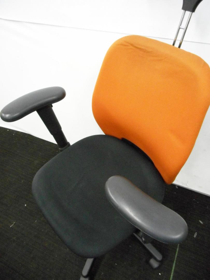 【ラスト1脚のため特価処分】内田洋行製 可動肘付きオフィスチェア コートハンガー付き テラコッタカラー【中古オフィス家具 事務用回転イス】【おつとめ品】- 川崎店