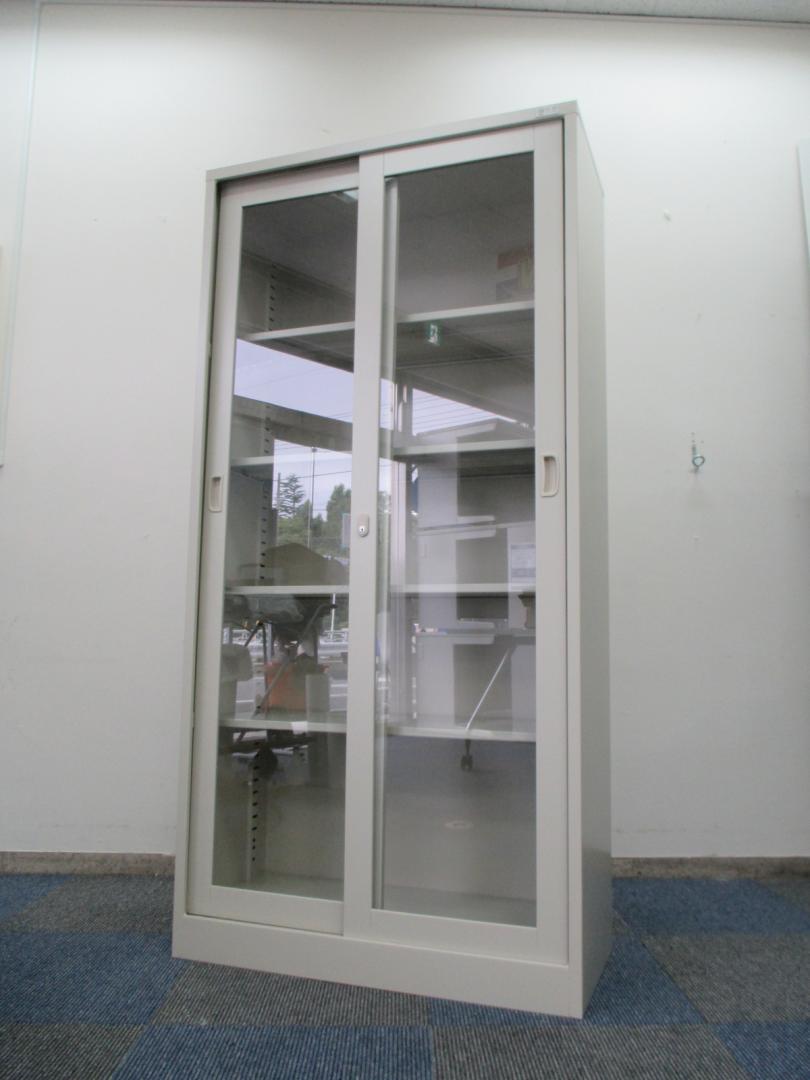 【未使用品】【状態良好】生興製 ガラス引き戸書庫【鍵&取り扱い説明書付き】【中古 事務用キャビネット 書棚】- 千葉店
