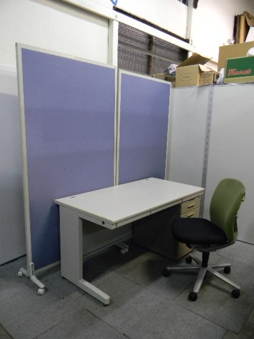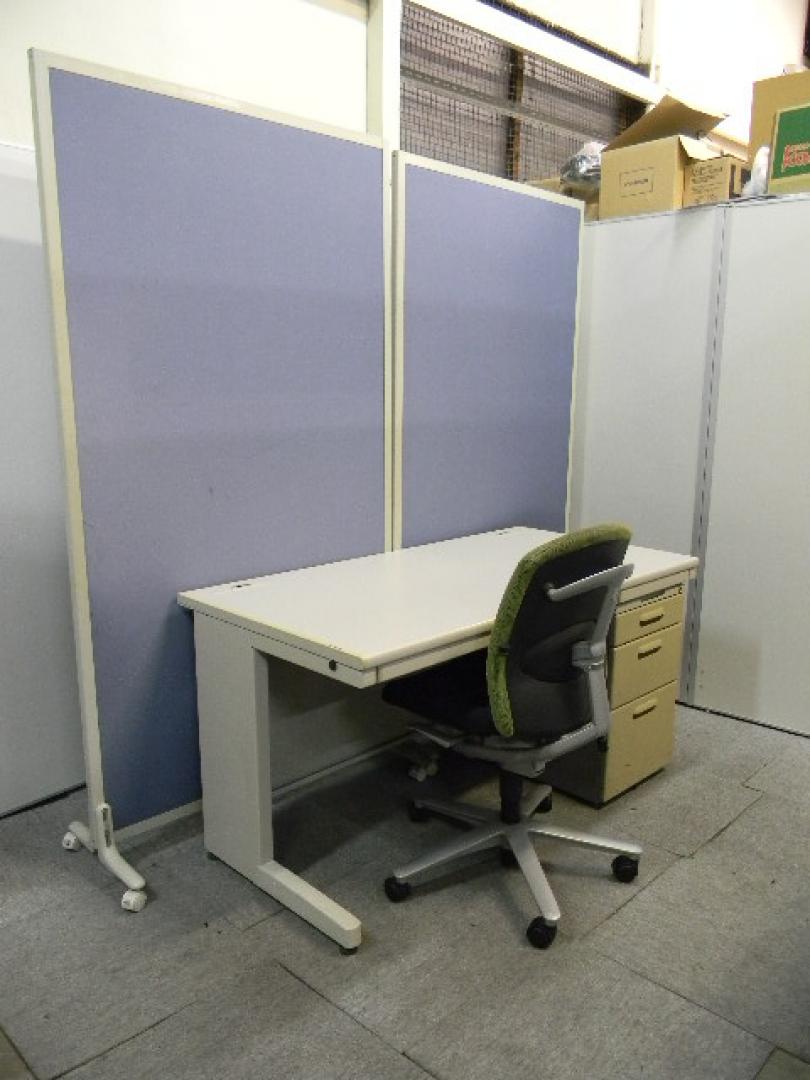 平机 W1400 コクヨ製 &3段ワゴン イトーキ製 &肘無しチェア ウチダ製 &ローパーティション その他メーカー製【中古 オフィス家具 デスク 机】【セット商品】- 在庫数