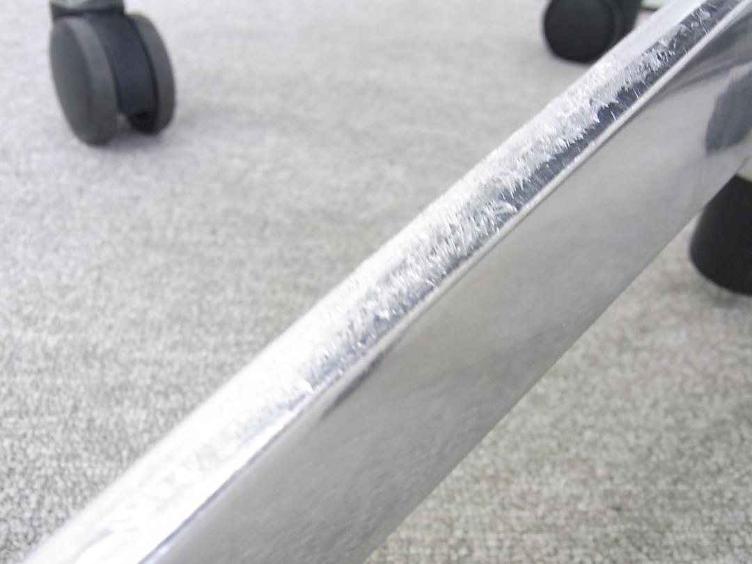 - かなり強い濃い黄ばみ・変色が商品全体にある。(例、座面・背もたれ、脚部等にある。)