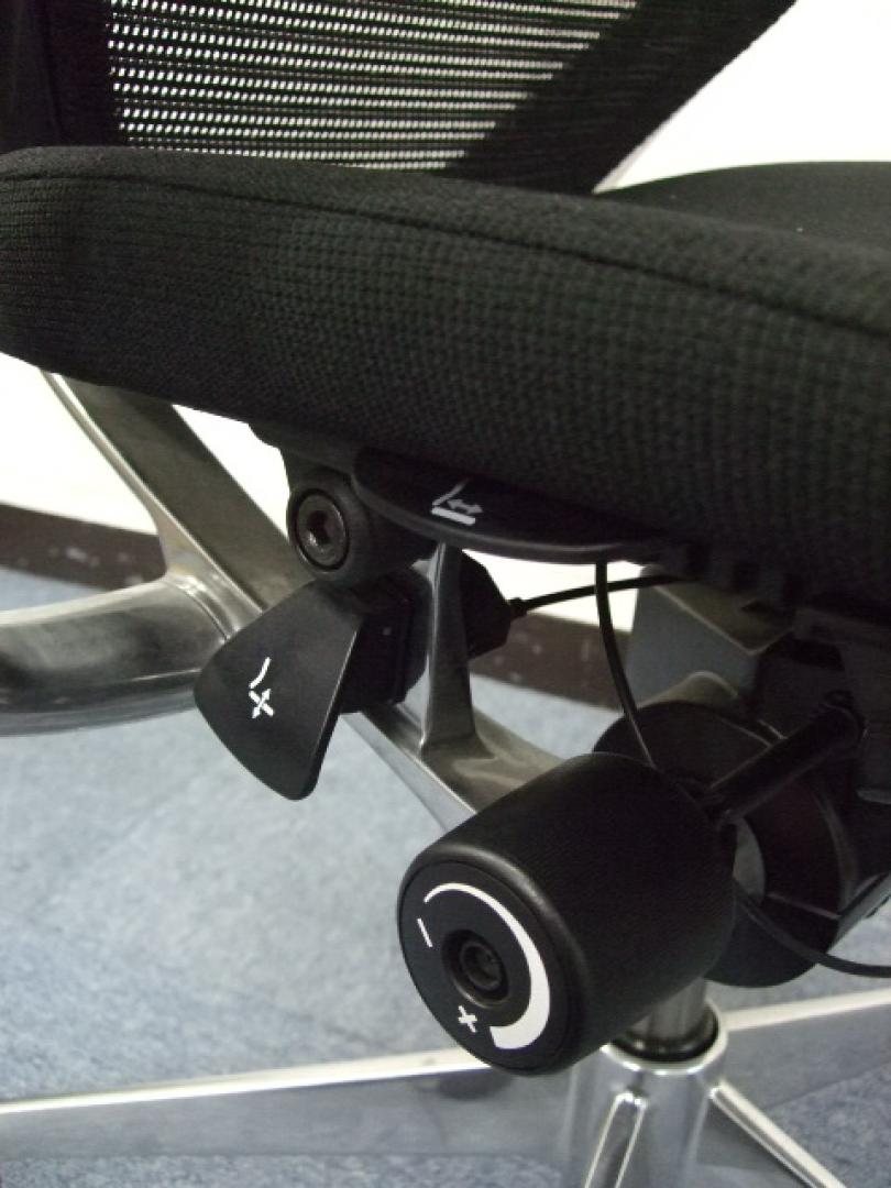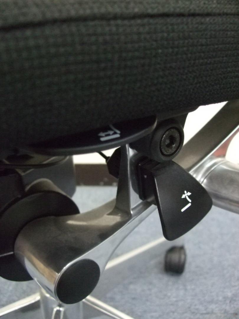 - 座面の右下にあるレバーの操作により座面位置を上下に100mm分調整することが可能です。