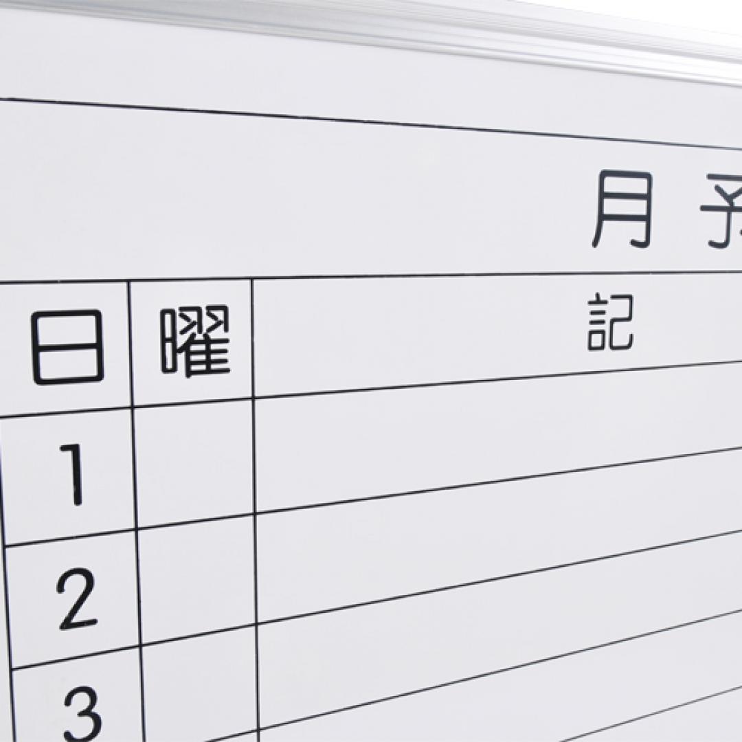月間予定表タイプの壁掛けホワイトボードです。