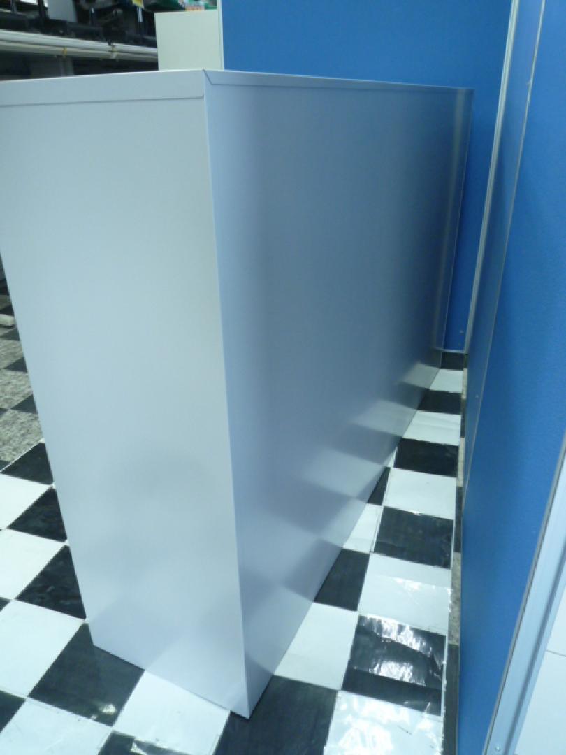 - 一部不具合あり天板歪み、引出開閉不可、アジャスター無し、施錠不可のようにそのカウンターの本来の効用を果たすための機能以外の一部が使用不可な状態。(例、引出が 開閉しづらい等がある。)
