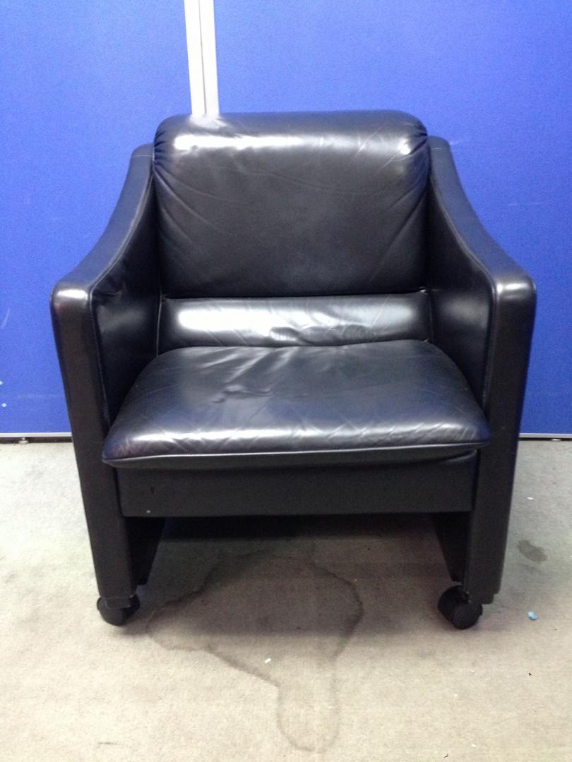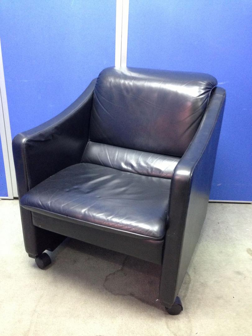 【在庫4台】革張り|キャスター付|国内産|応接|ブラック- 京都東寺店