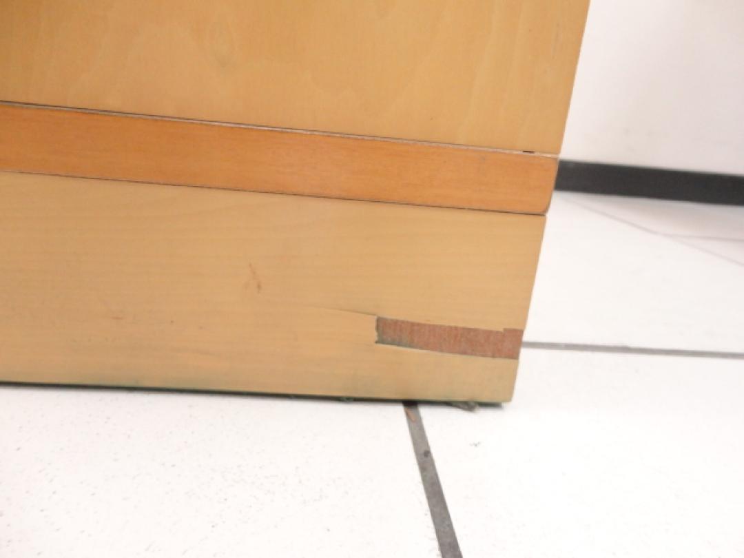 - 多数不具合あり引出の開閉不可、施錠不可、棚板無しといったその書庫の本来の効用を果たすための機能以外の多数が使用不可(例、扉、引出の開閉がしづらいなどがある。 )