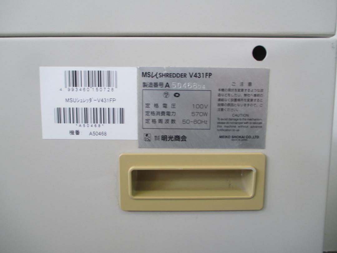 【MSシュレッダー】【A4対応】明光商会製 V-431FP【ワンカットクロス方式】【中古 業務用シュレッダー 千葉店】■状態:中古品