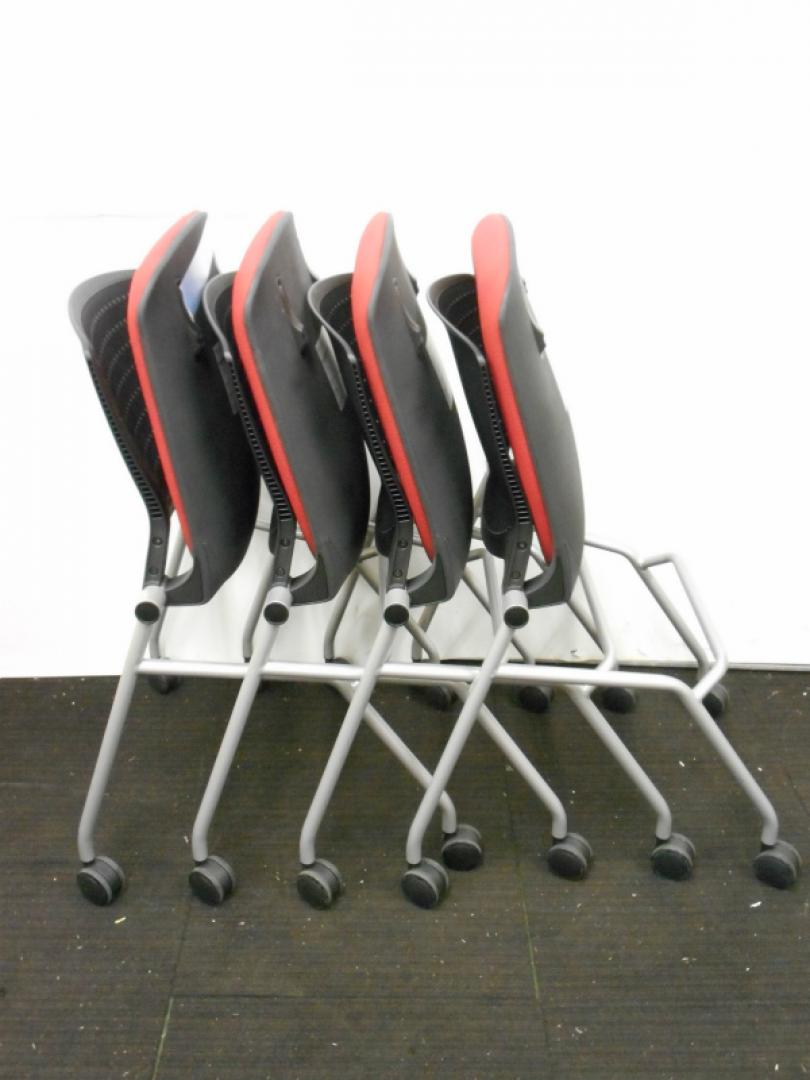 【4脚入荷!状態良好】岡村製作所 会議用チェア ネスティングチェア 背パットなし ブラックシェル レッド座面【中古ミーティングチェア】サーキュラーバリューCO2削減量の算出について