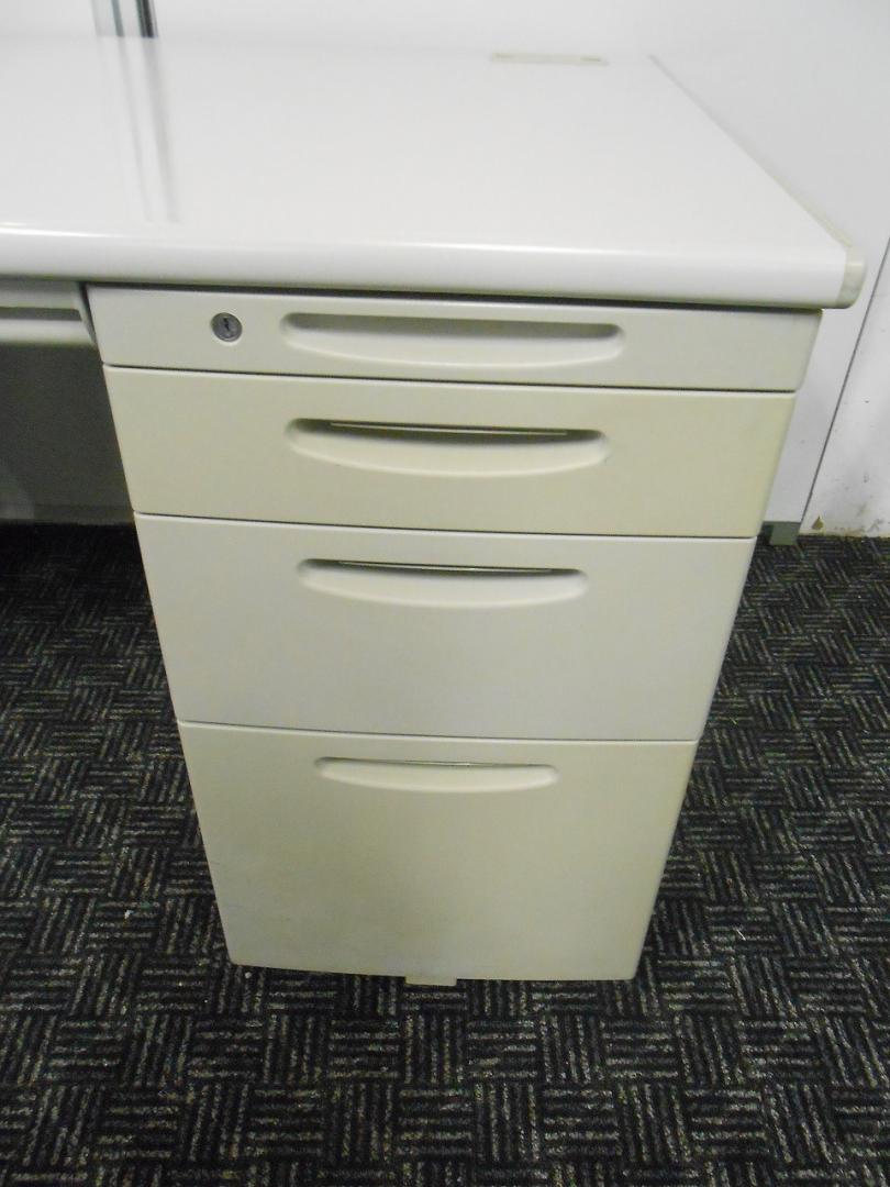 - 袖机のワゴンは、最下段がロング引出しになっており、従来より収納力120%アップ。