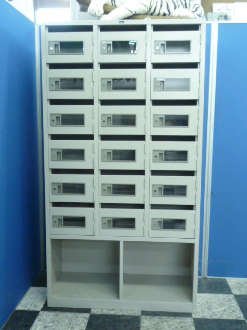 18人用で大容量。1ヶ所あたりのサイズは250×350×170mmとなっており、扉上部に隙間があるのでメールボックスとしても有用です。