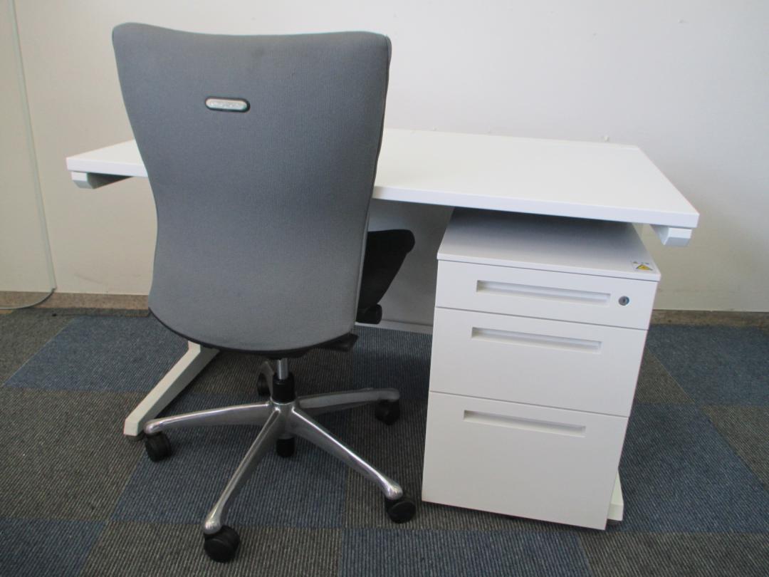 【3点セット】【平机+3段ワゴン+OAチェア】デスク&チェア:オカムラ製/ワゴン:イトーキ製【綺麗なホワイト色】【中古 事務机 デスク サイドワ- 千葉店