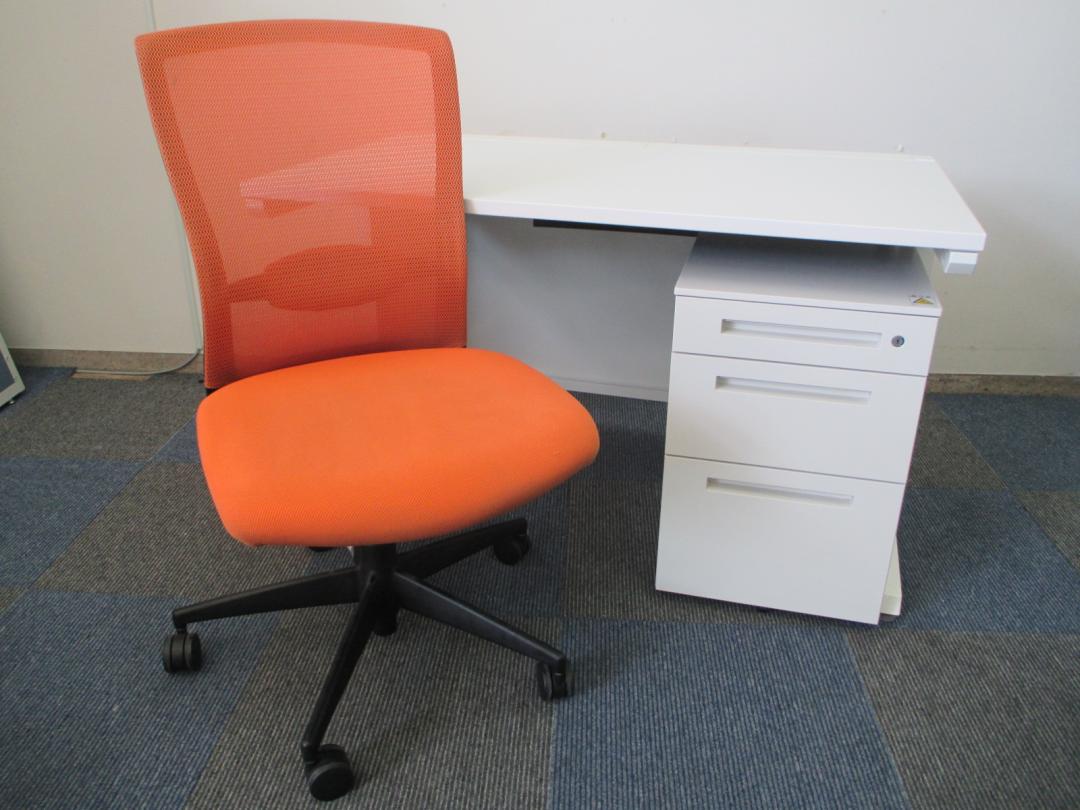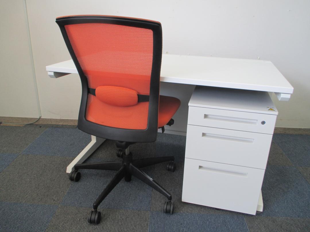 【3点セット】【平机+3段ワゴン+OAチェア】デスク:オカムラ製/ワゴン:イトーキ製/チェア:コクヨ製【綺麗なホワイト色】【中古 事務机 デス- 千葉店