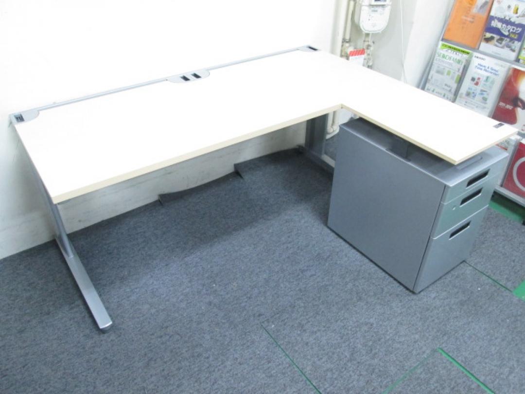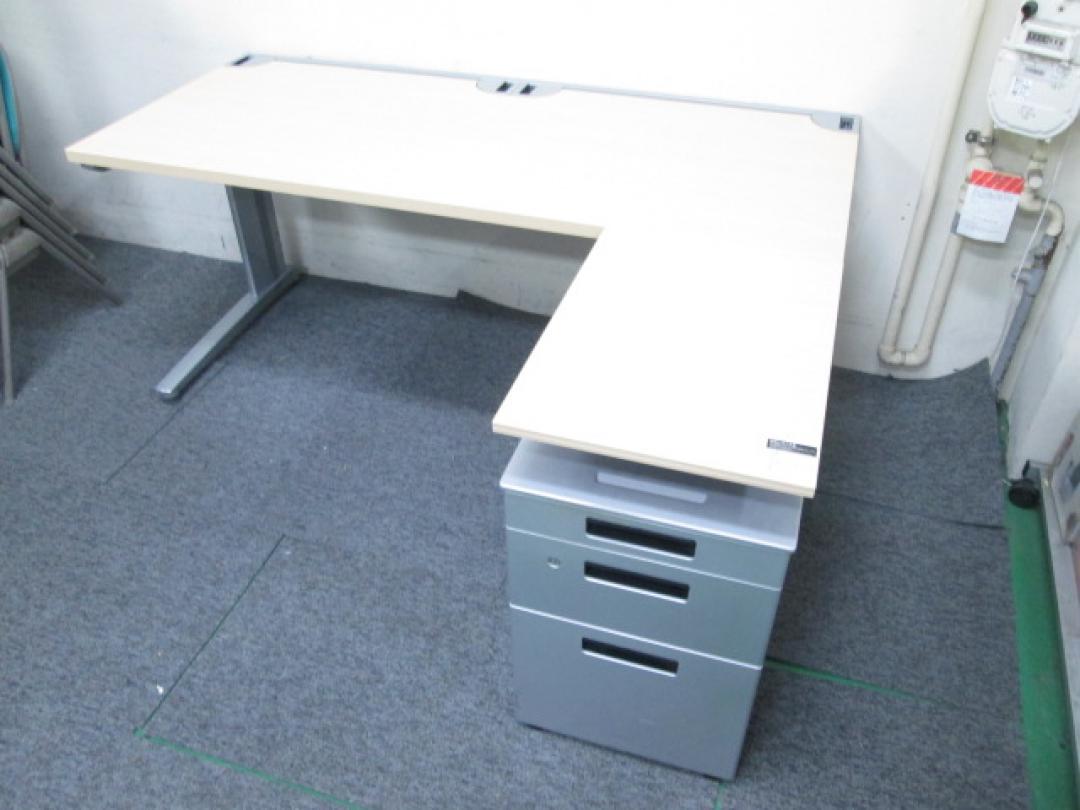 【セット商品】【コクヨ製 デスク+ワゴンセット】ワゴンは天板付の為、簡易L字デスクとしても使用できます- 池袋店