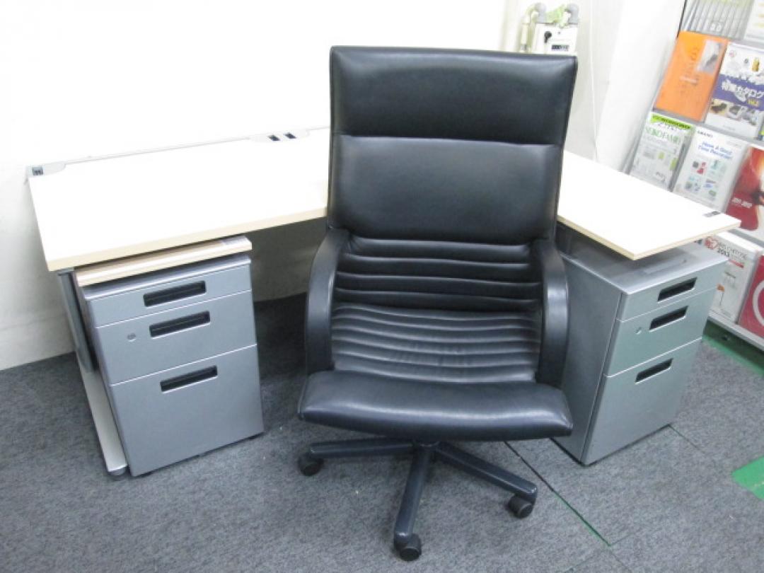 【高級セット 平机+ワゴン×2台+エグゼクティブチェアセット】上長席におススメの一品です【セット商品】- 池袋店
