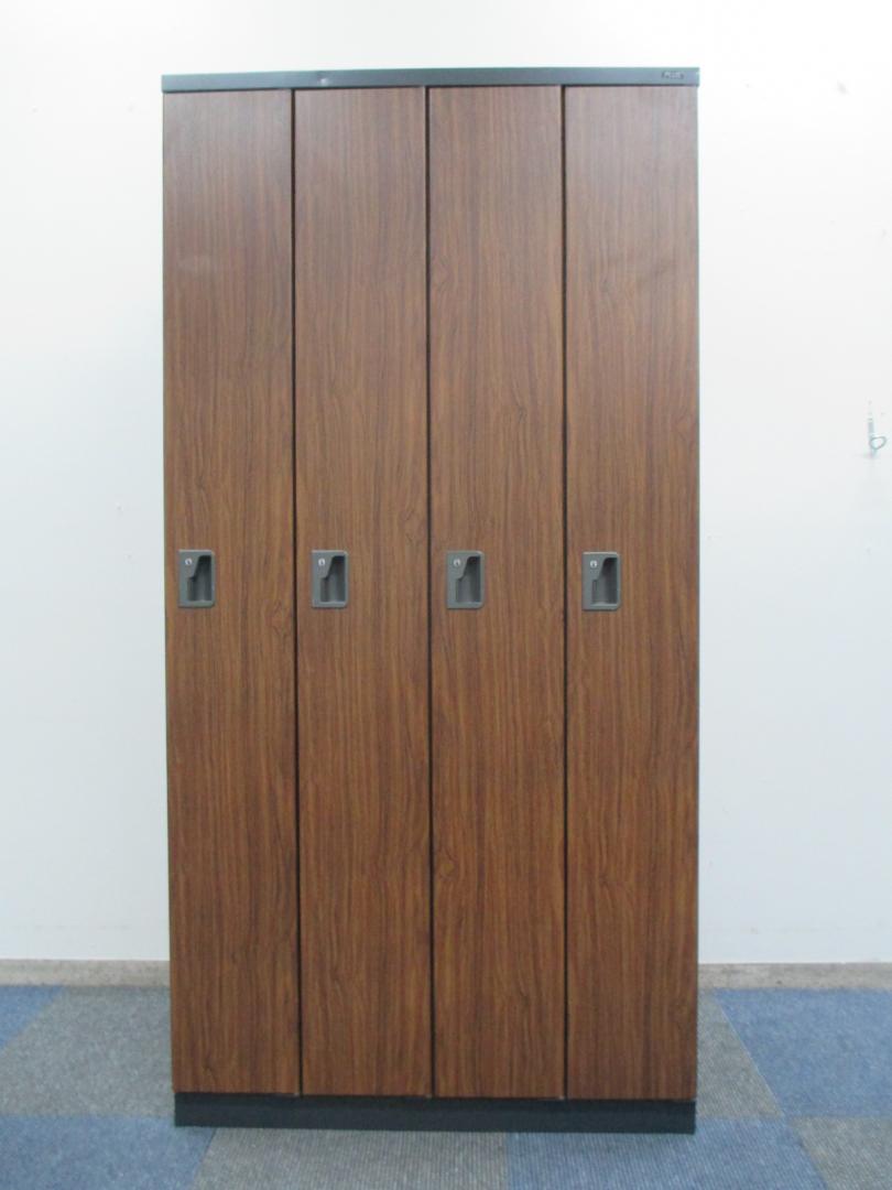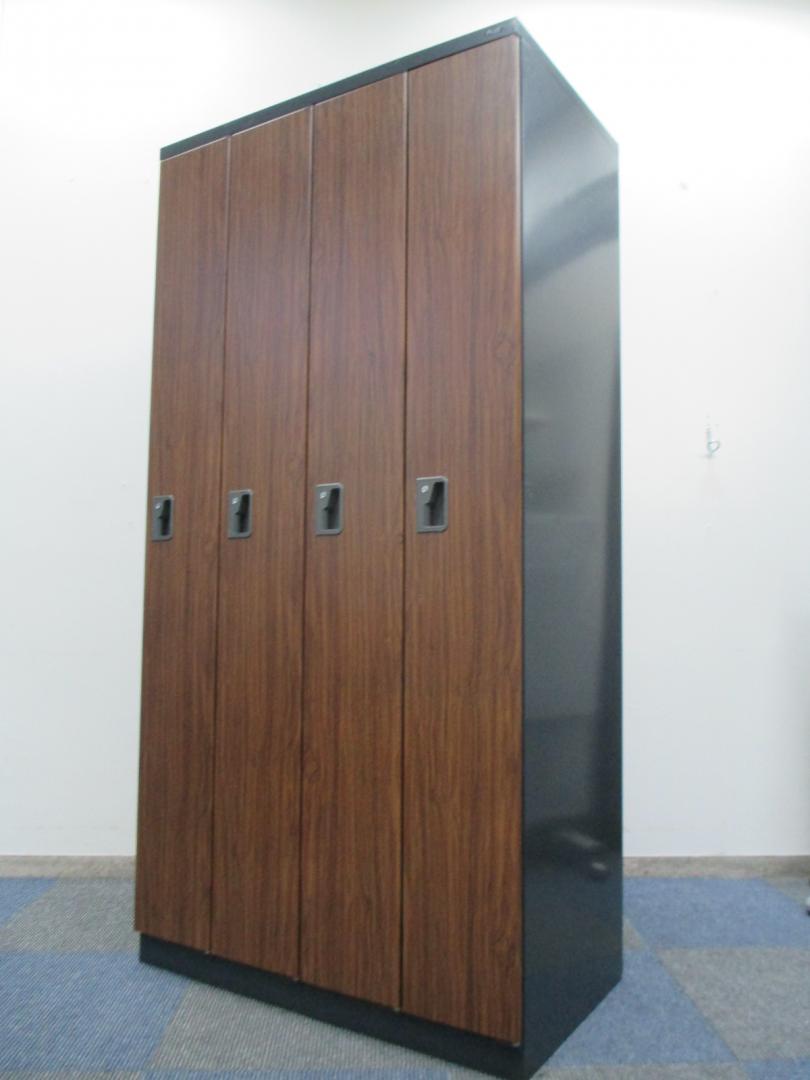 【前面木目調】PLUS製 4人用ロッカー【中古 事務用ロッカー】- 千葉店