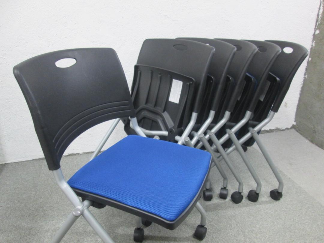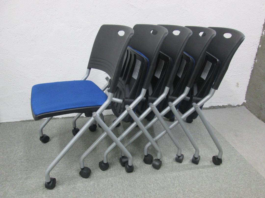ネスティングチェア|ブルー×ブラック|収納に便利な会議用チェアです!- 横浜本店