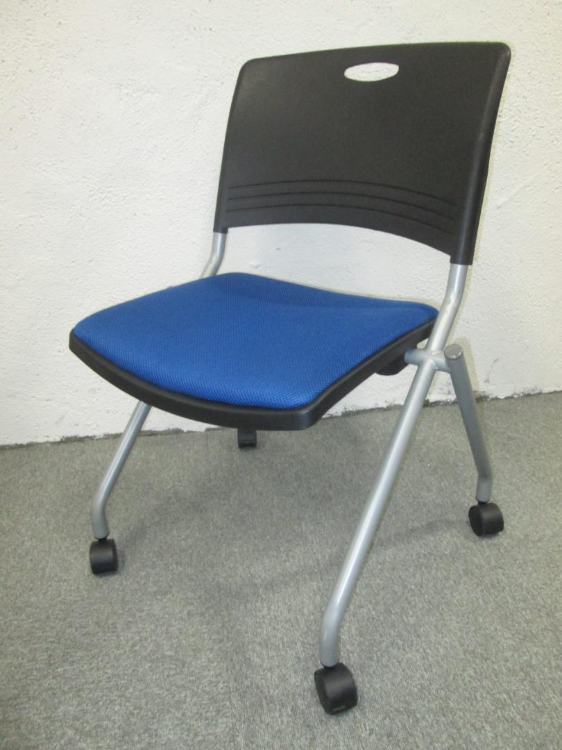 ネスティングチェア5脚セット|ブルー×ブラック|収納に便利な会議用チェアです!- 横浜本店