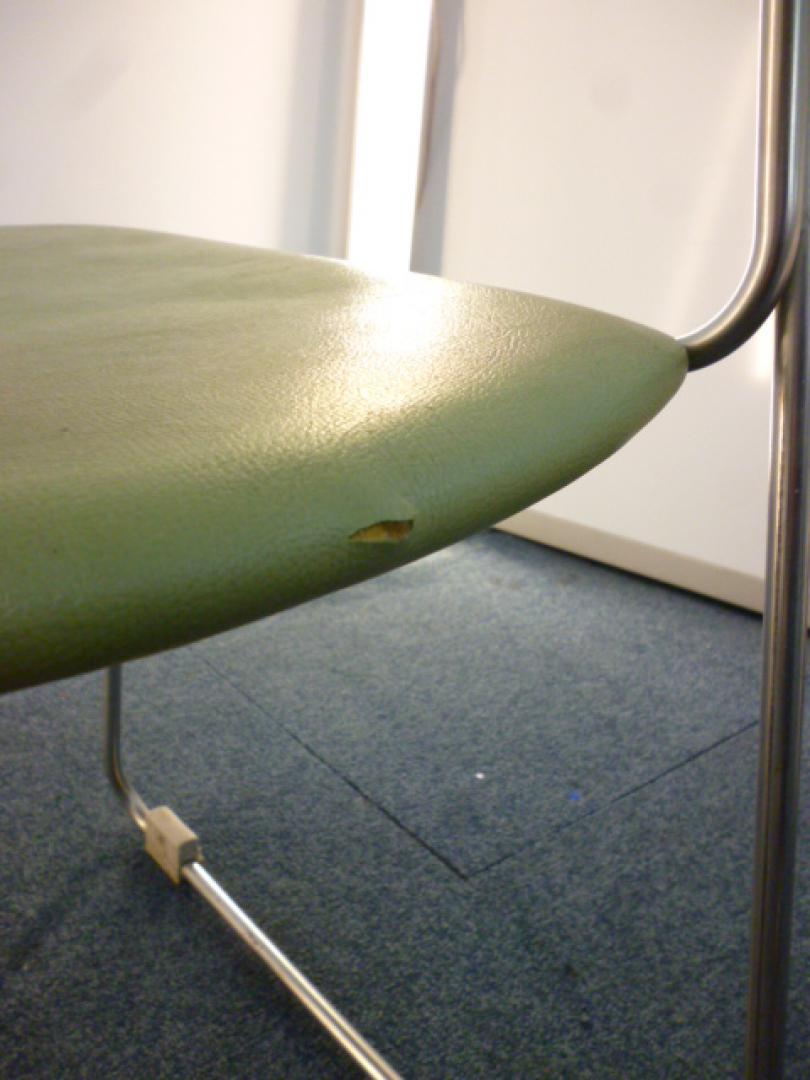 - かなり強い濃い黄ばみ・変色が商品全体にある。(例、座面・背もたれ、脚部等にある。)