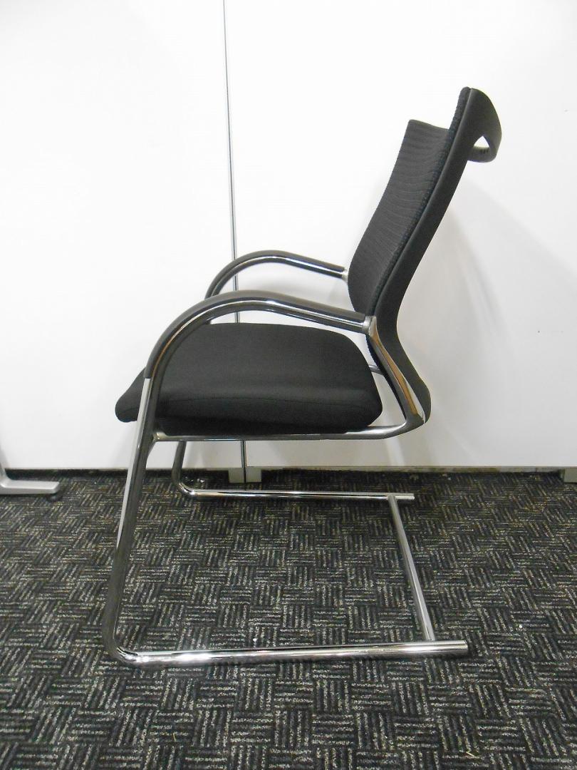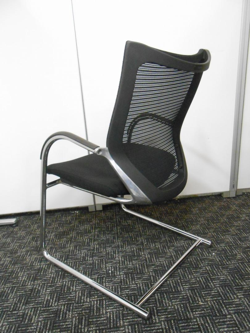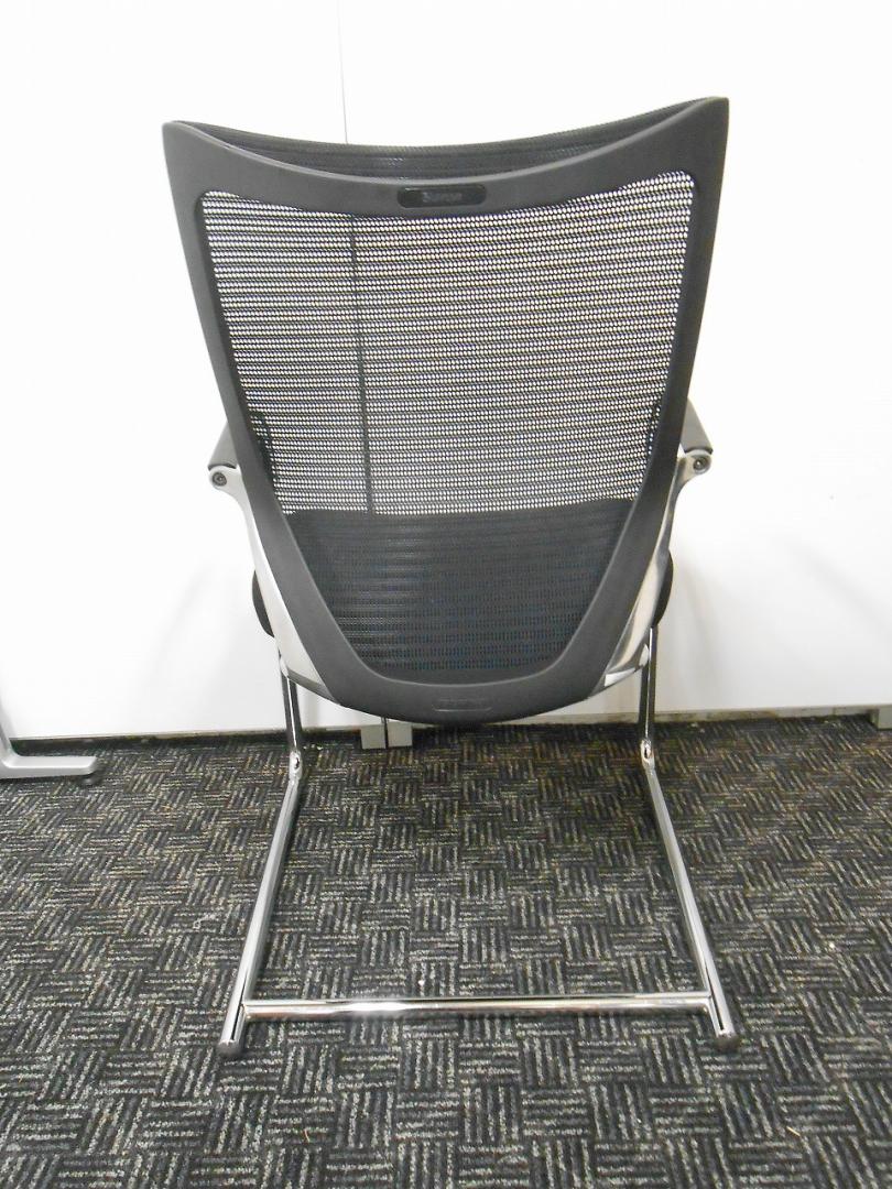 【在庫入替セール】オカムラ バロン ゲストチェア(ミーティングチェア) 背メッシュ×座クッション カンチレバー脚 ブラック×クロームメッキ