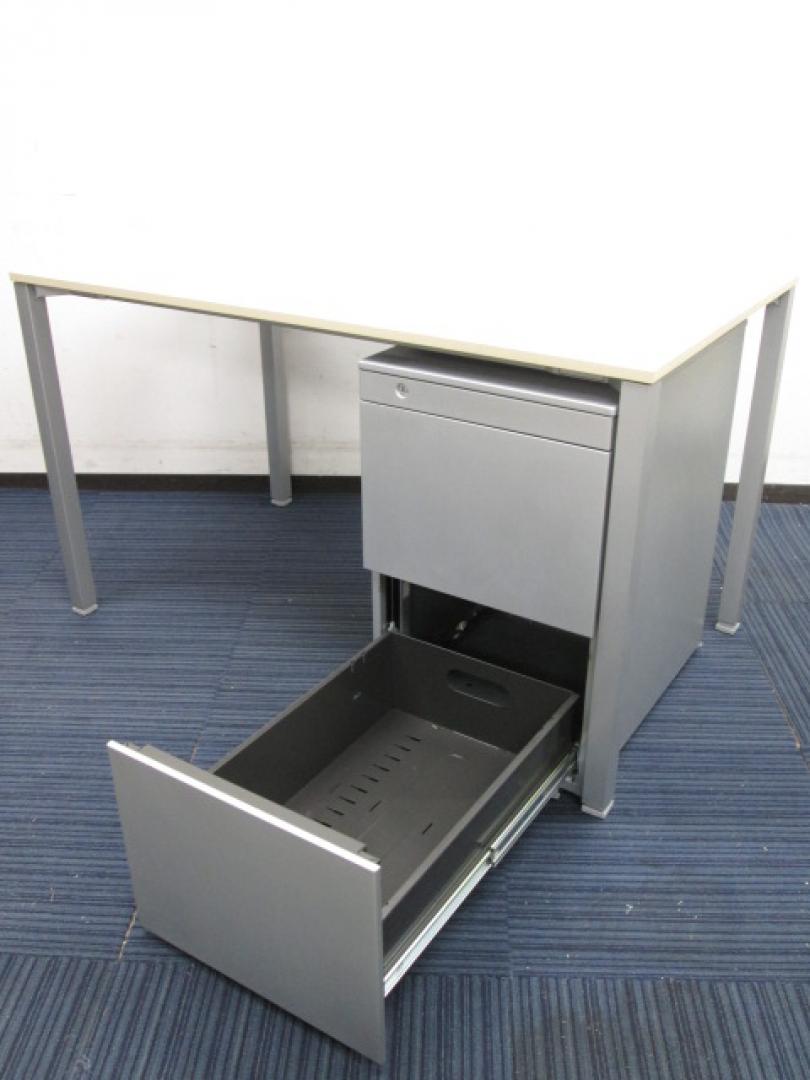 【カッコイイデスクと言えばコレ!】平机+3段ワゴンの疑似片袖机セット!【事務机】【中古オフィス用品】【セット商品】- 日本橋店