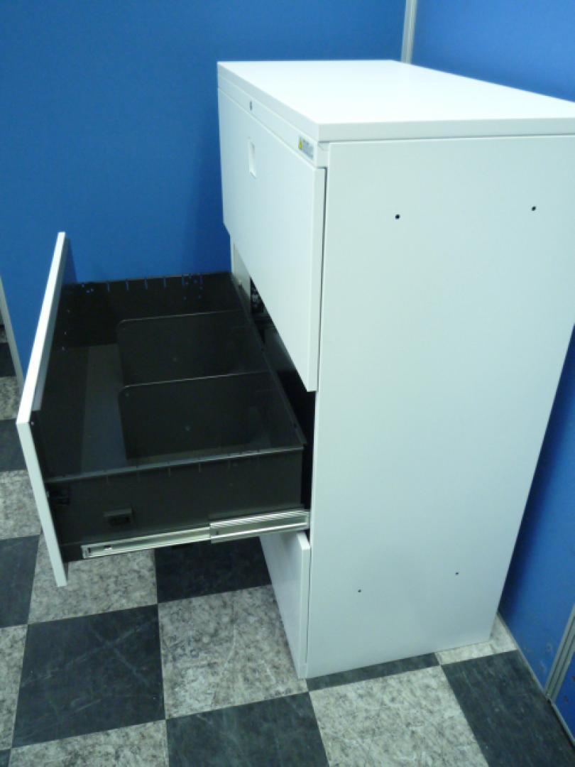 【オフィスの必需品!大容量の三段キャビネット!】■オカムラ(okamura)製 レクトラインシリーズ 3段ラテラル ローキャビネット ■ベース付 ■シリンダー錠 ■ホワイト 【弊社使用欄:A01037187】