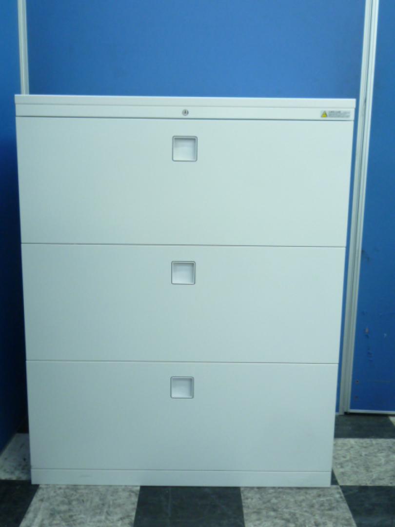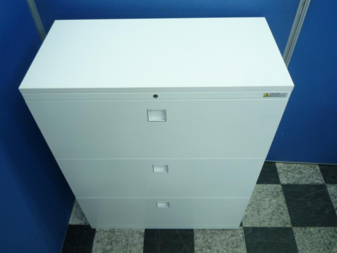【ファイル収納にオススメ!高品質で使いやすい人気シリーズの3段ラテラル書庫!】■オカムラ(okamura)製 レクトラインシリーズ 3段ラテラル書庫 ローキャビネット H1100㎜ ■ホワイト ■シリンダー鍵 ■天板付き(天板:ホワイト) ※日焼け有