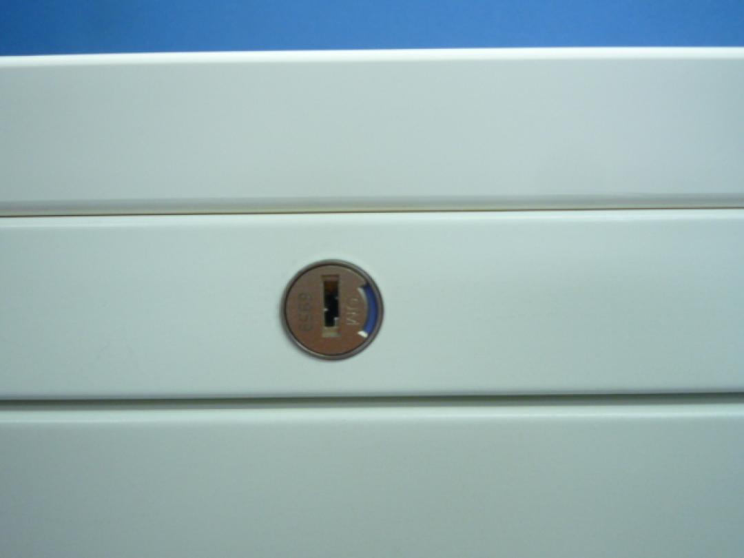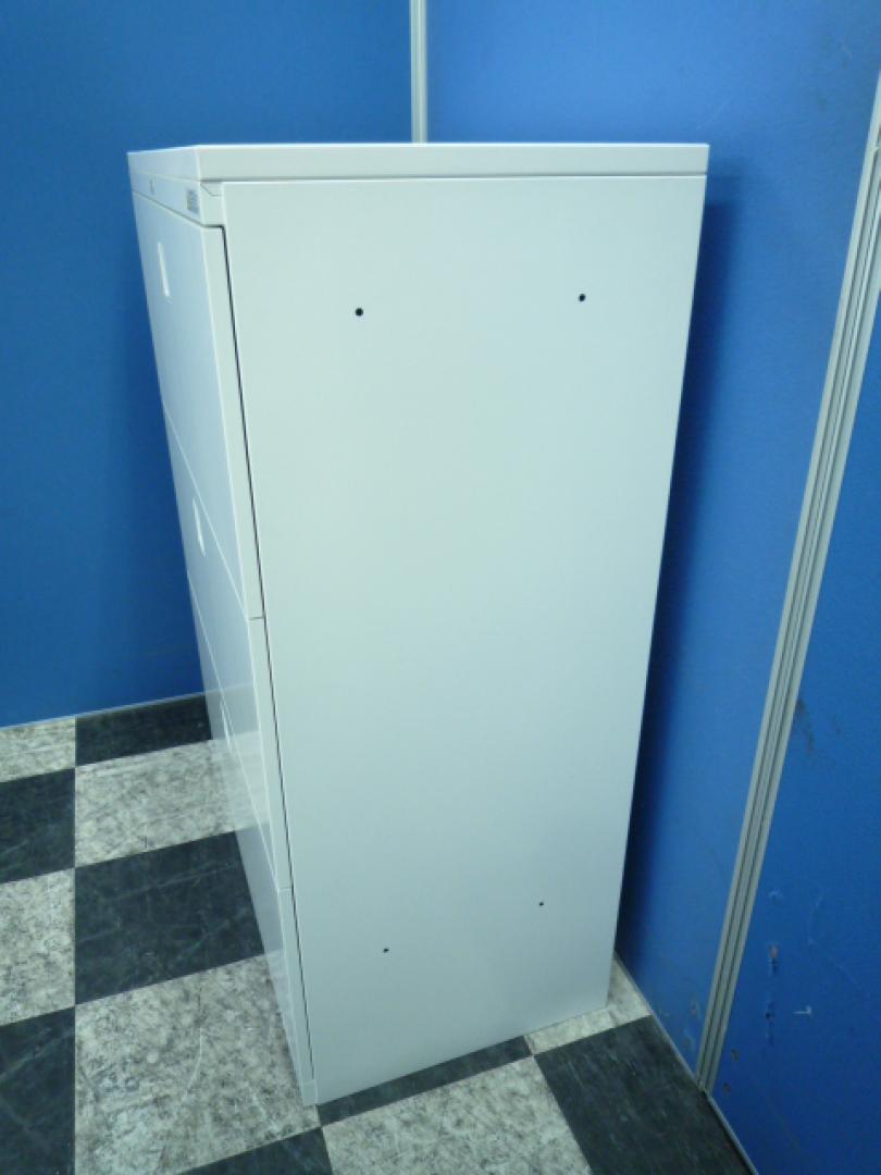 オカムラ レクトライン 3段ラテラル書庫 ホワイト天板 シリンダー錠 鍵付き ※取っ手部分に若干日焼けあり