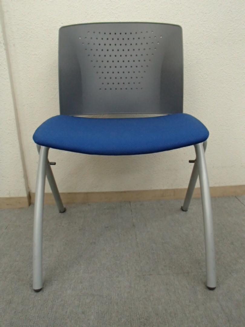 スタッキングチェア|背面グレー 座面ブルー|事務椅子|ミーティングチェア- 大阪・堺店