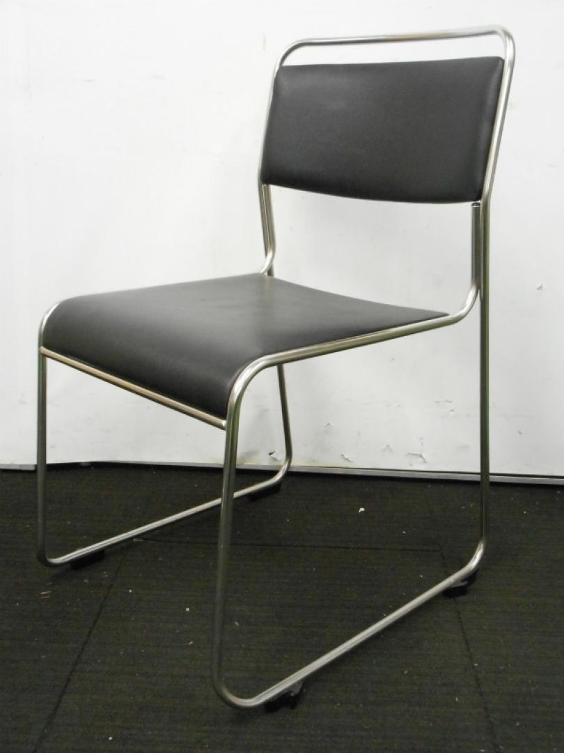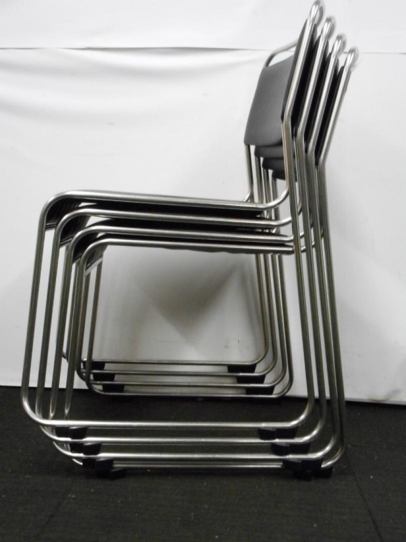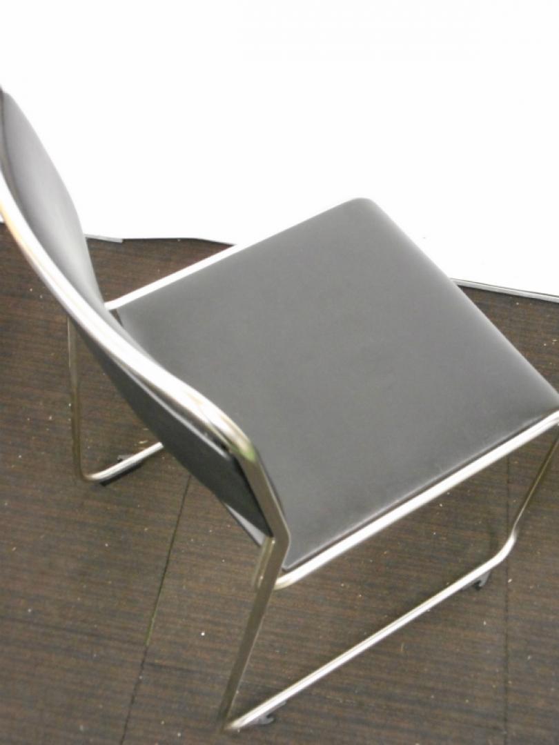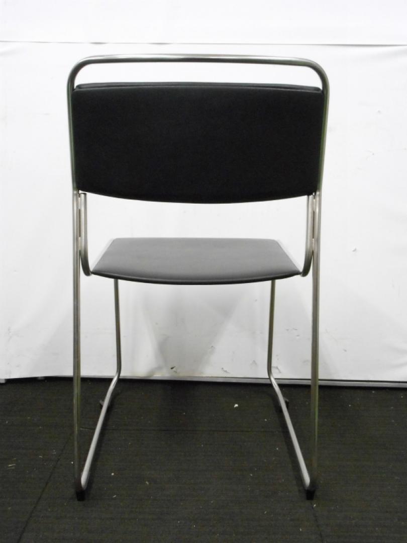 【8脚入荷!状態良好】コクヨ製 スタッキングチェア ループ脚 ビニールレザー座面 ブラック 【中古会議用チェア ミーティングチェア】- 川崎店