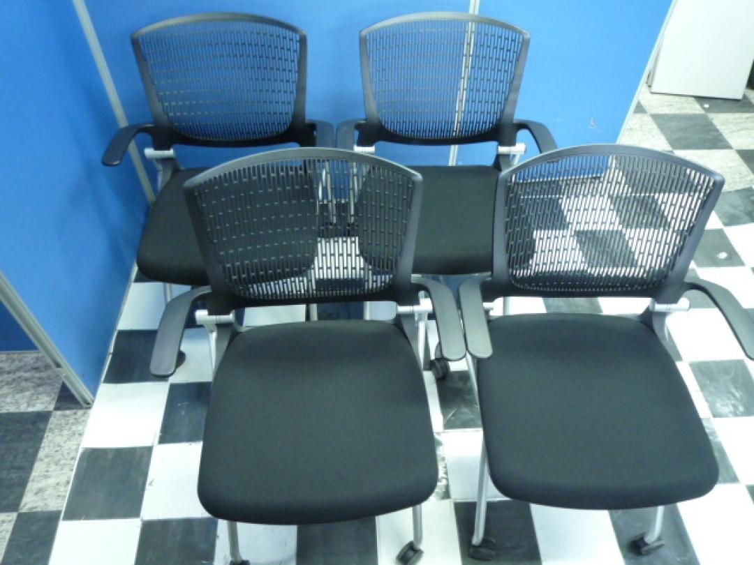 【中古】 グラータチェア 肘付きブラック 4脚セット オカムラ/okamura ミーティングチェア 117507