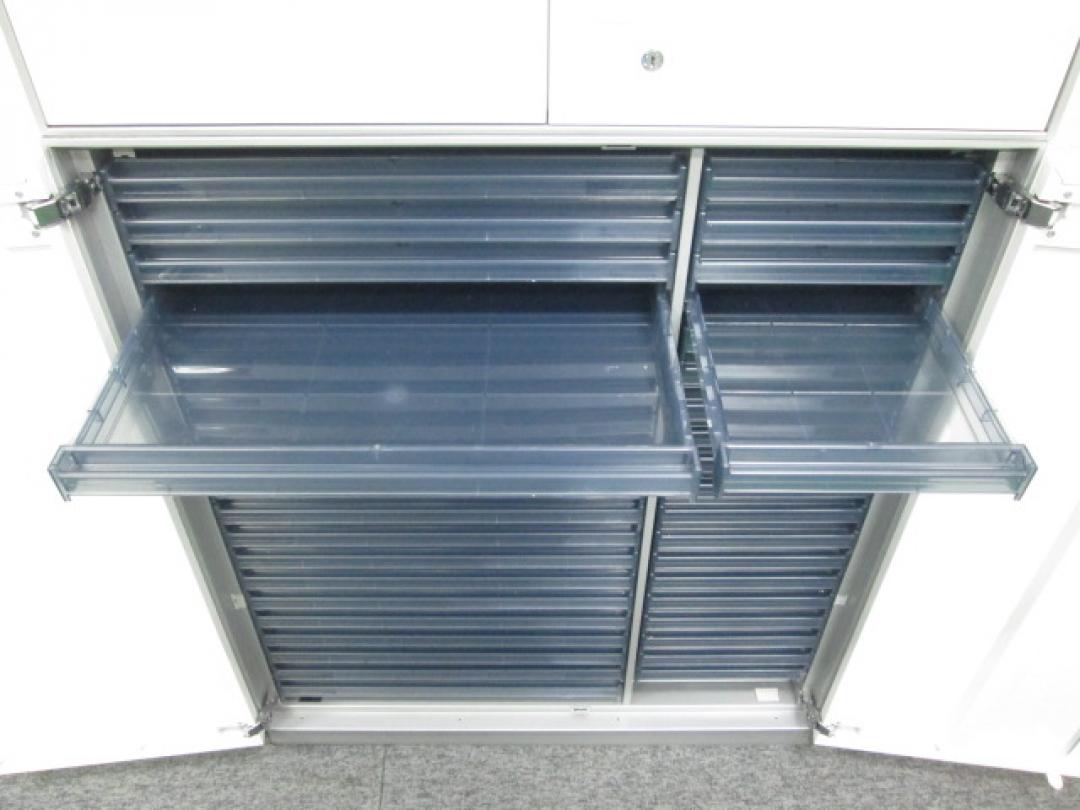 【観音開き+クリスタルトレー(扉、鍵付)書庫セット】人気のホワイト- 池袋店