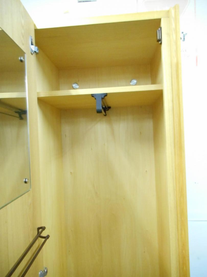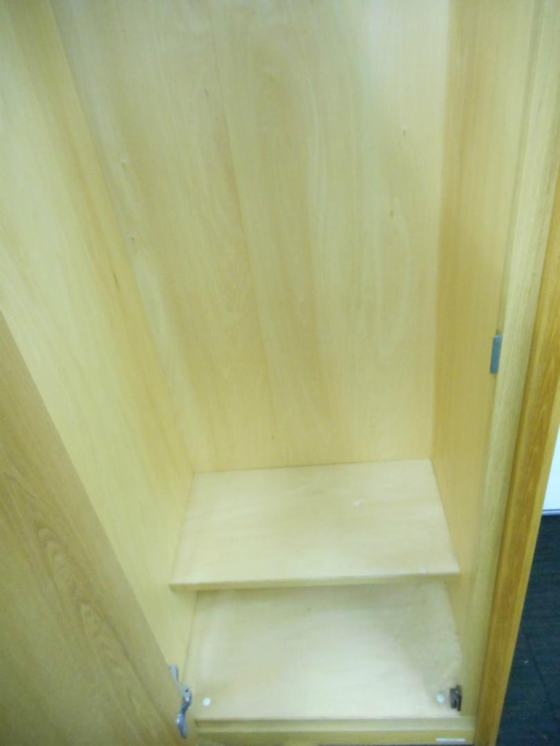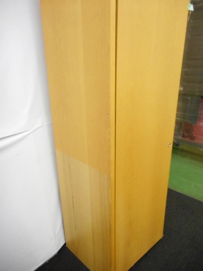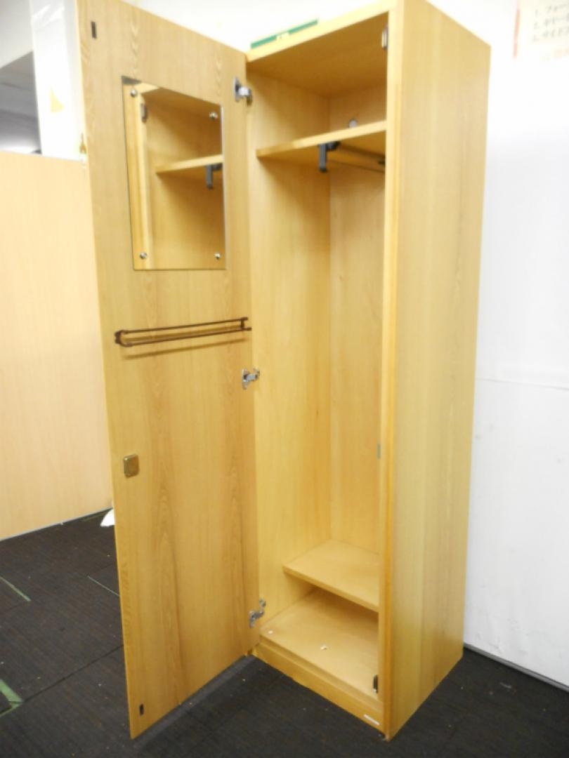 【1台入荷】木製ワードローブ 1人用ロッカー 鍵付き 目立った傷等はありませんがサイドに日焼けあります【中古オフィス家具 役員用家具】- 川崎店