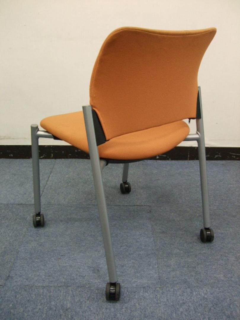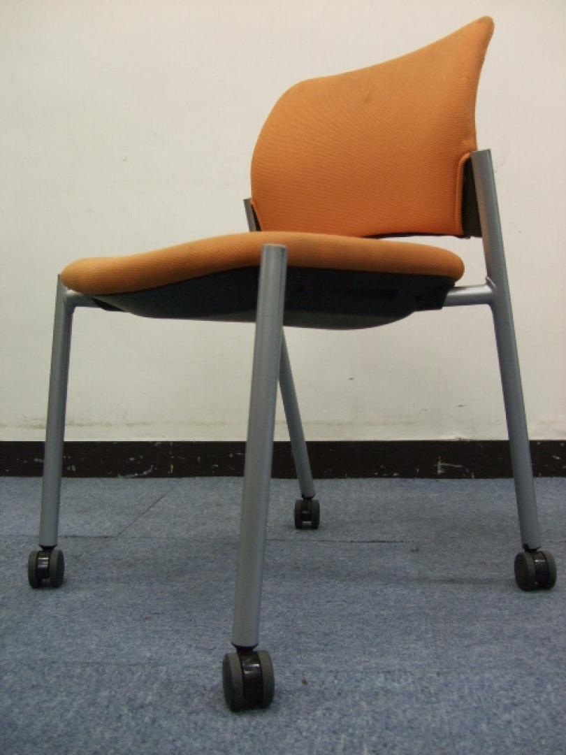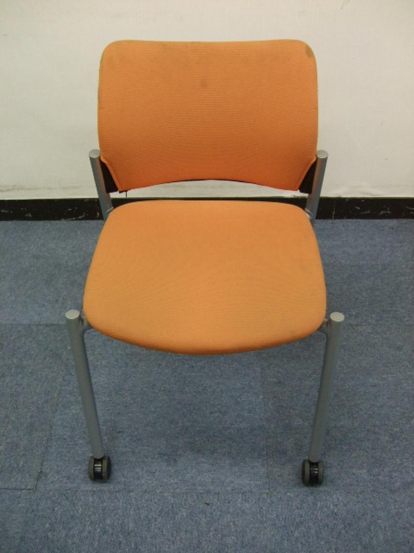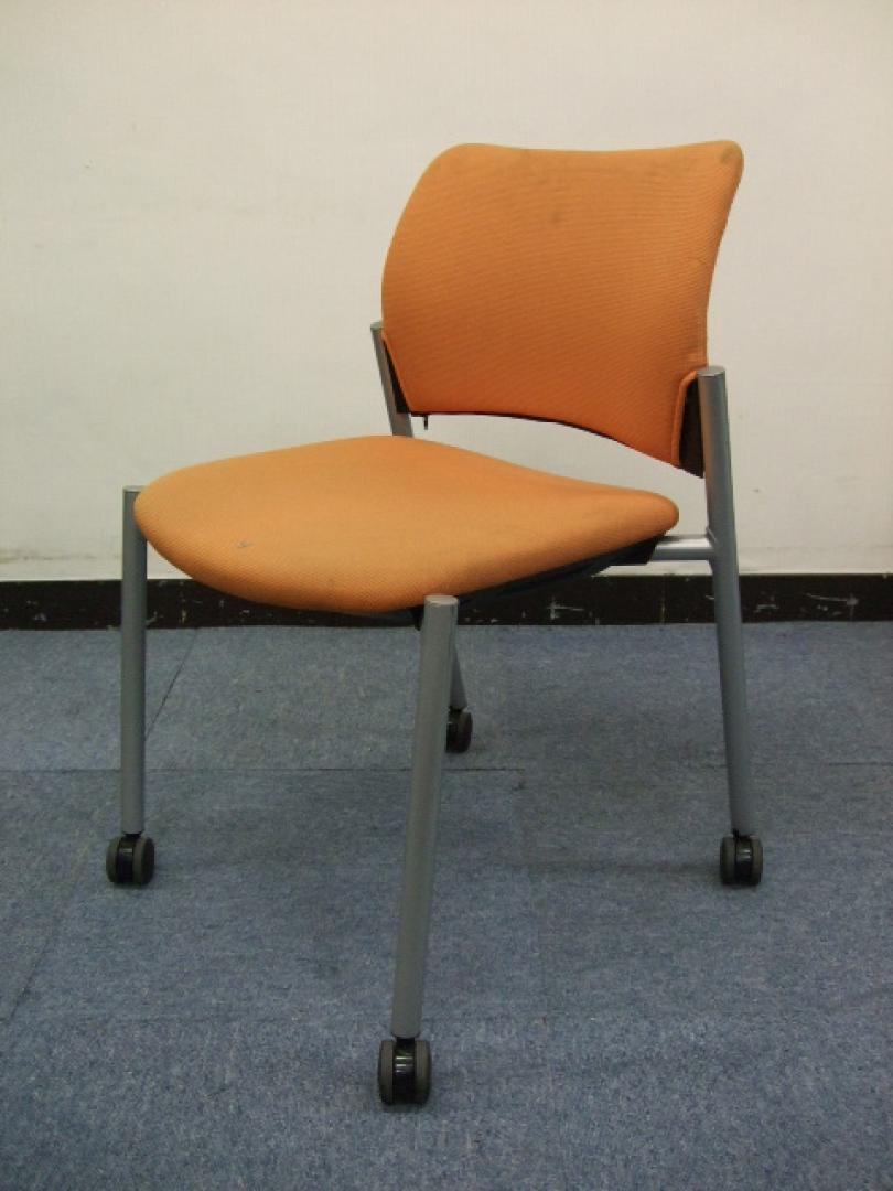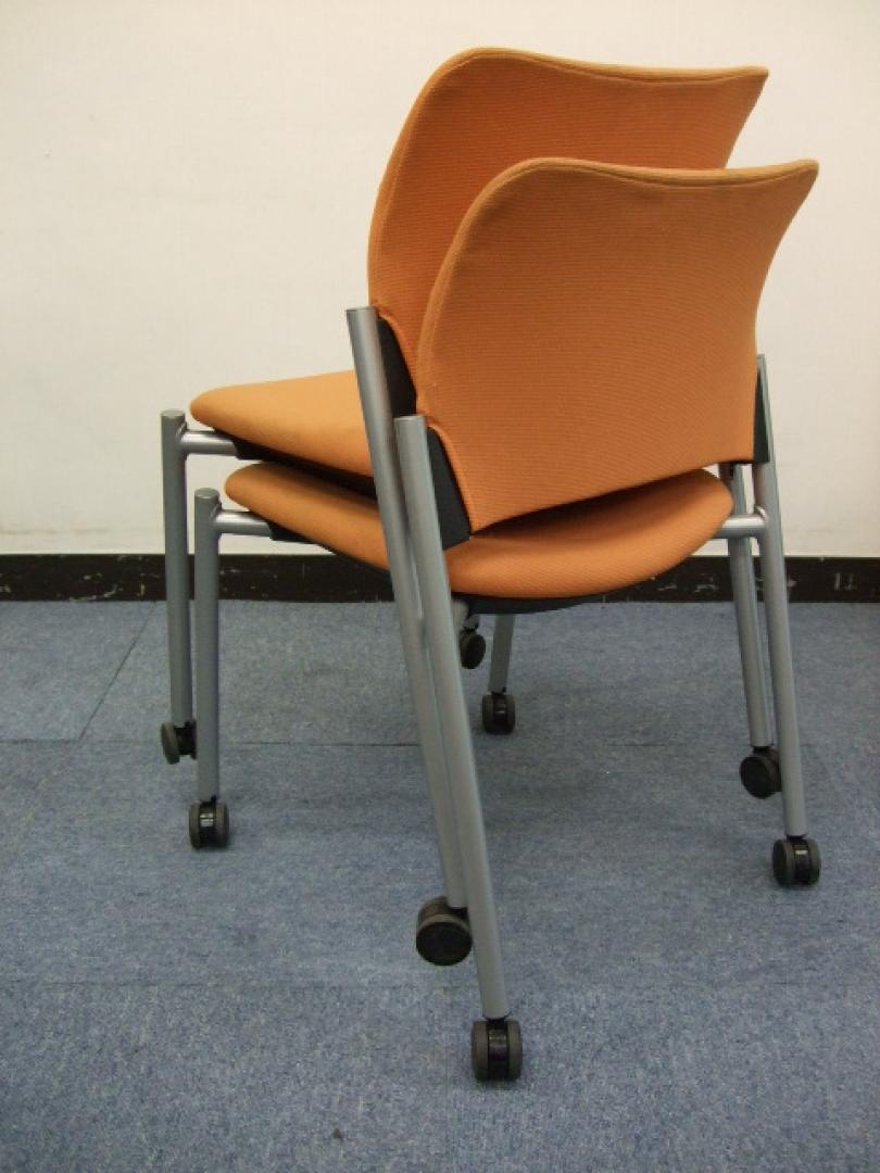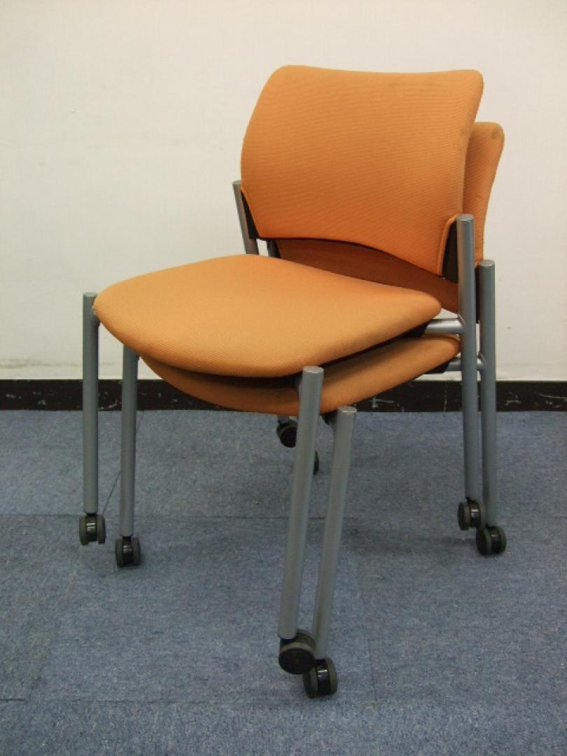 重ねられる明るいオレンジ色のチェアが入荷しました!キャスター付!- 在庫数