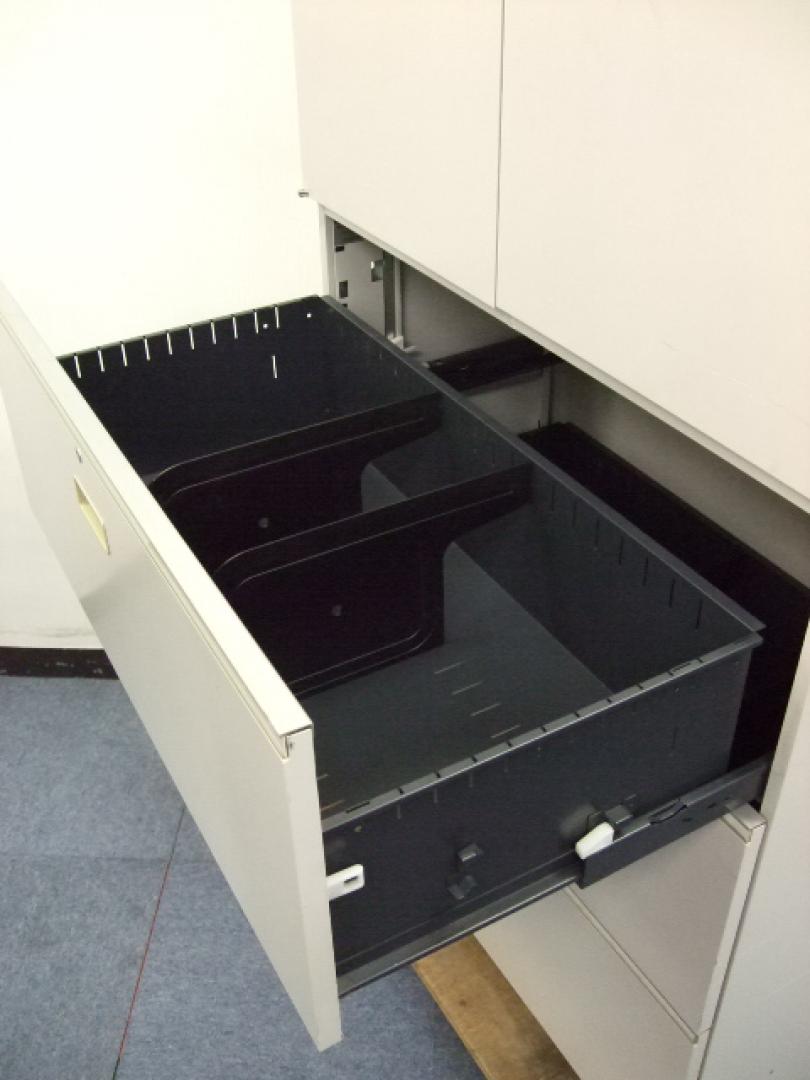 - 一部不具合ありそ引出の開閉不可、施錠不可、棚板無しといったの書庫の本来の効用を果たすための機能以外の一部が使用不可(例、扉、引出の開閉がしづらいなどがある。 )