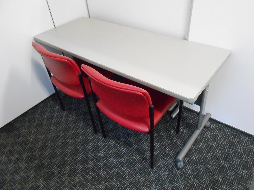 【セット商品】 サイドスタックテーブル+スタッキングチェア×2脚セット(スチールケース製) ■ セミナールームにおすすめ- 在庫数